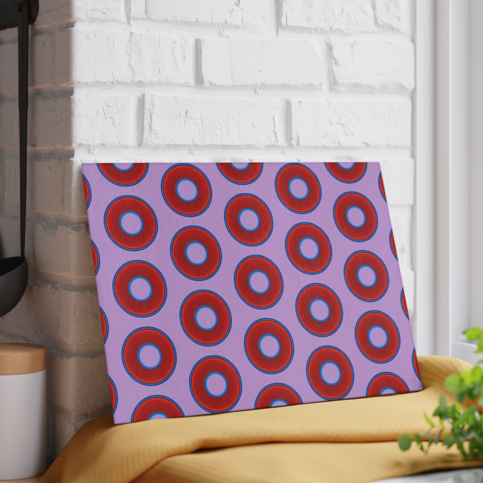 My Friend's Cutting Board - vivid red donuts w/wisteria purple background