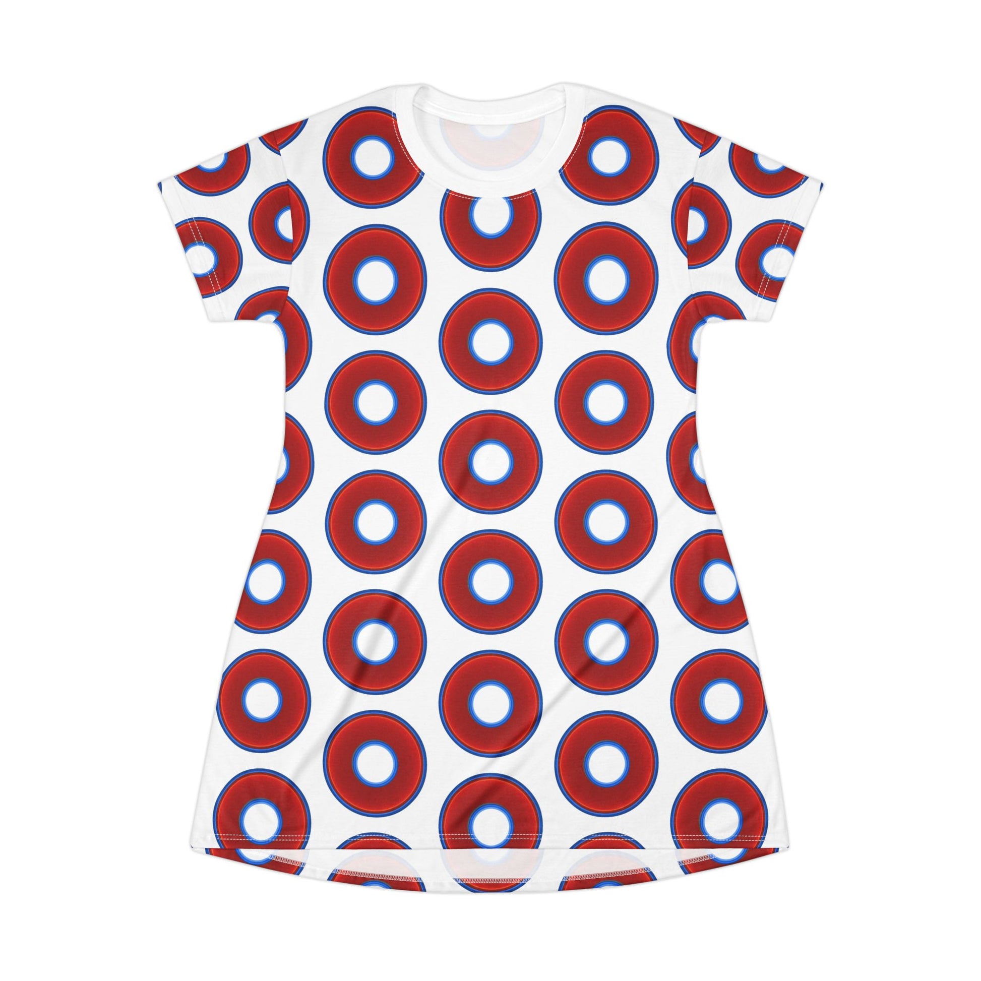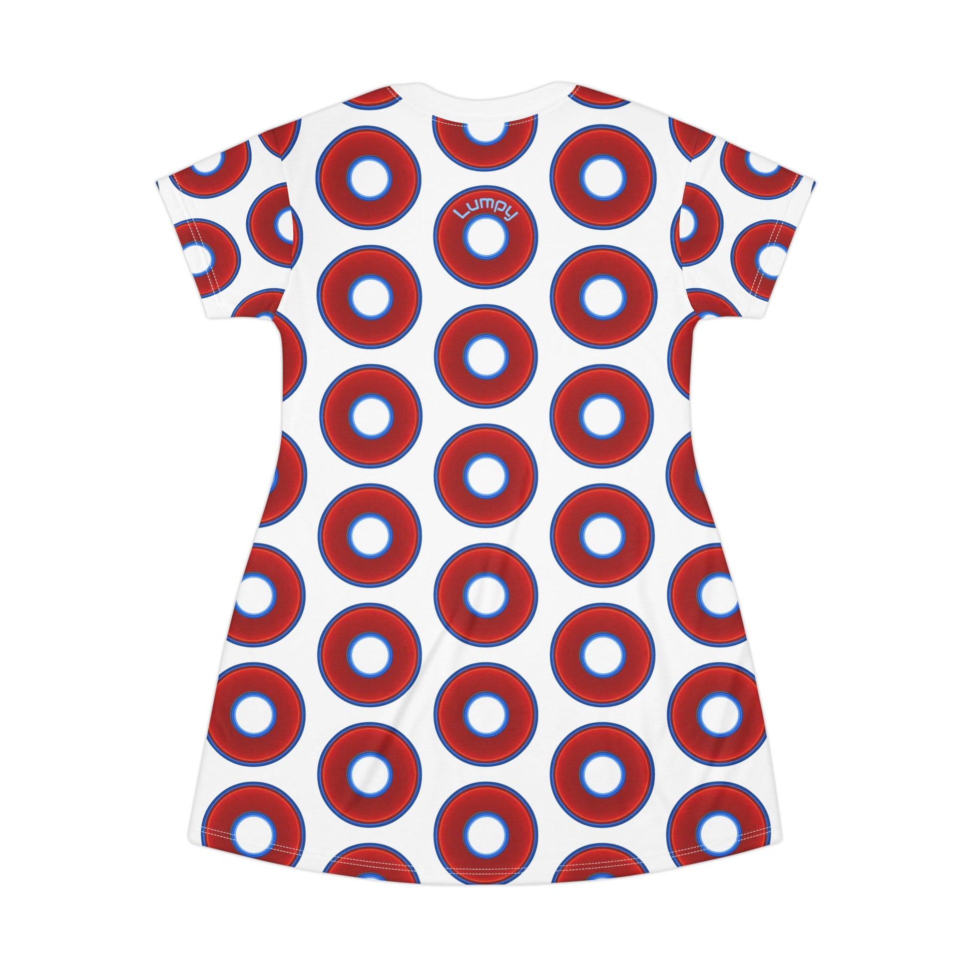 Not a Muumuu AOP Tee Shirt Dress - red vivid donuts w/white background
