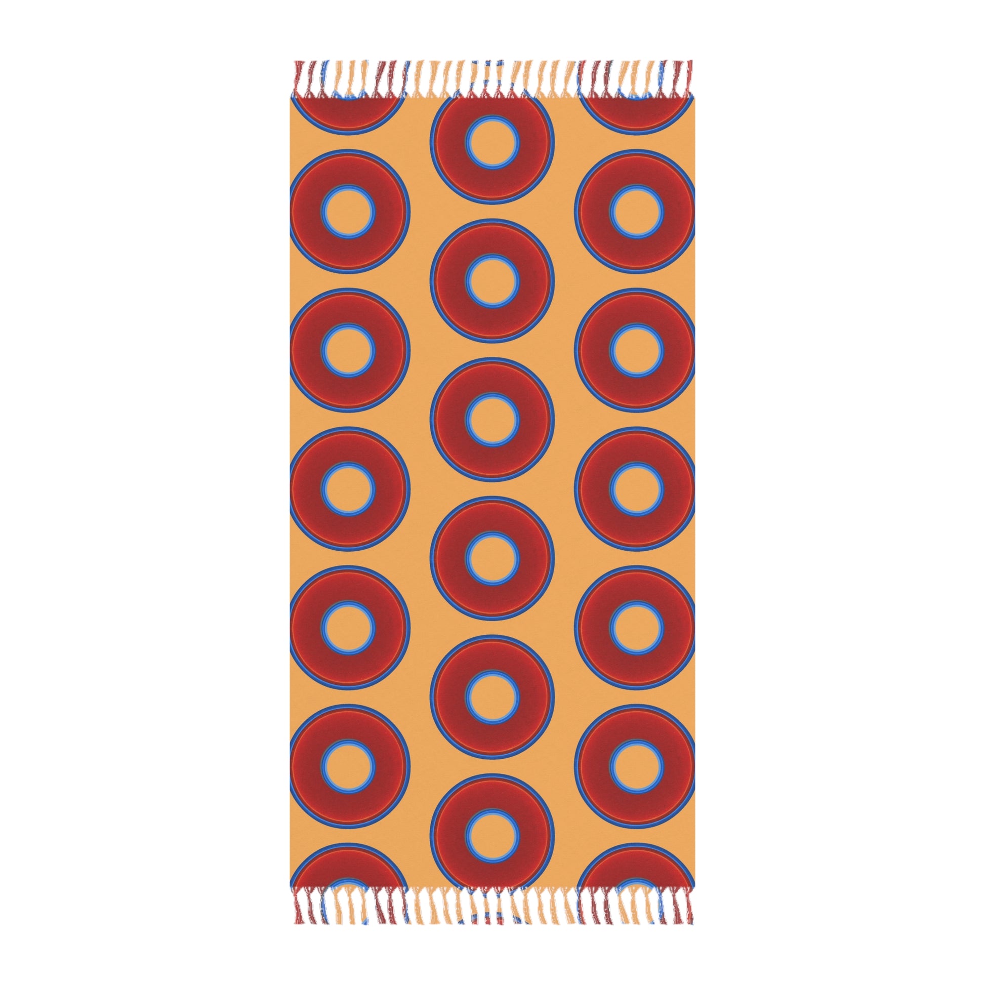 Oversized Lumpy Beach Towel - vivid red donuts w/creamsicle orange background