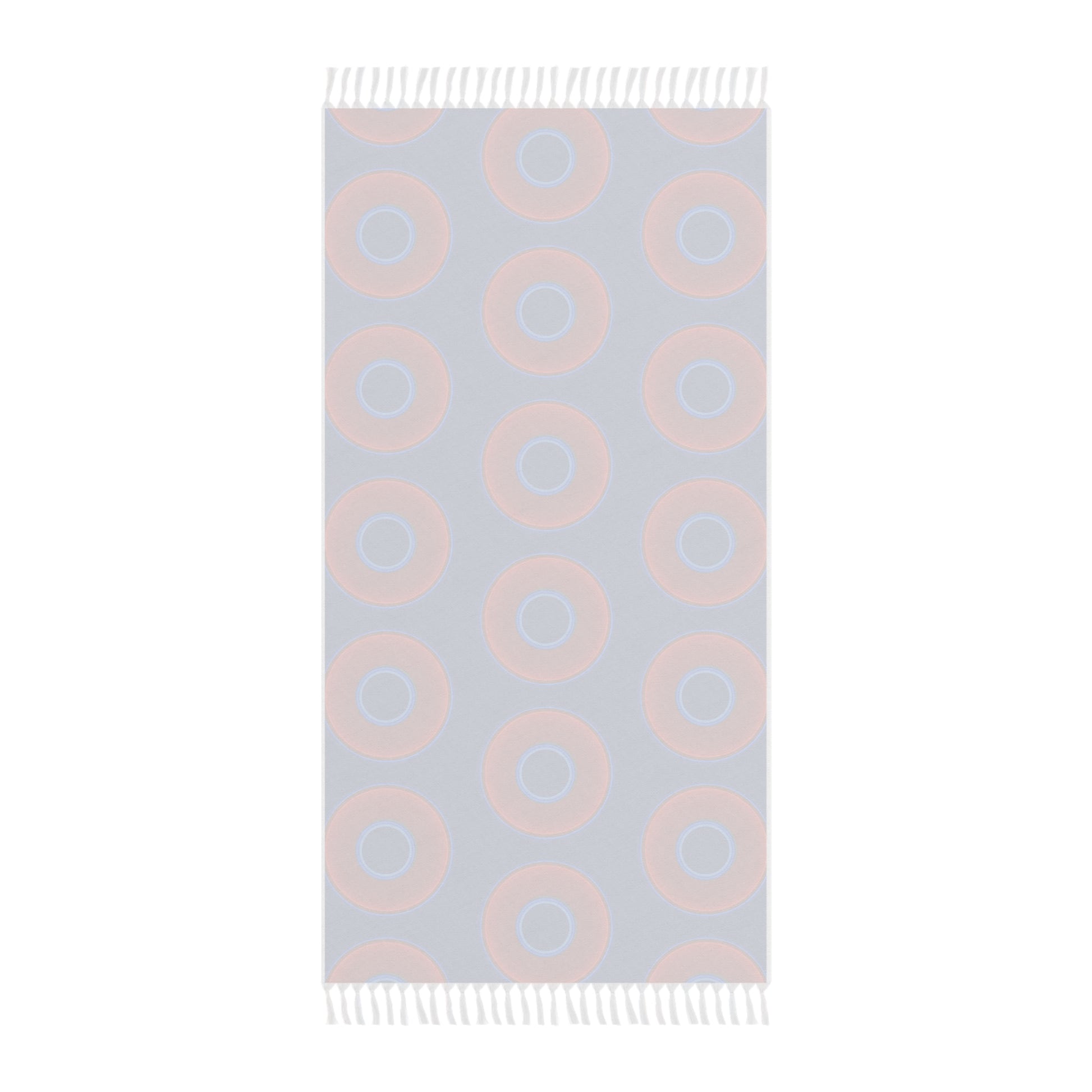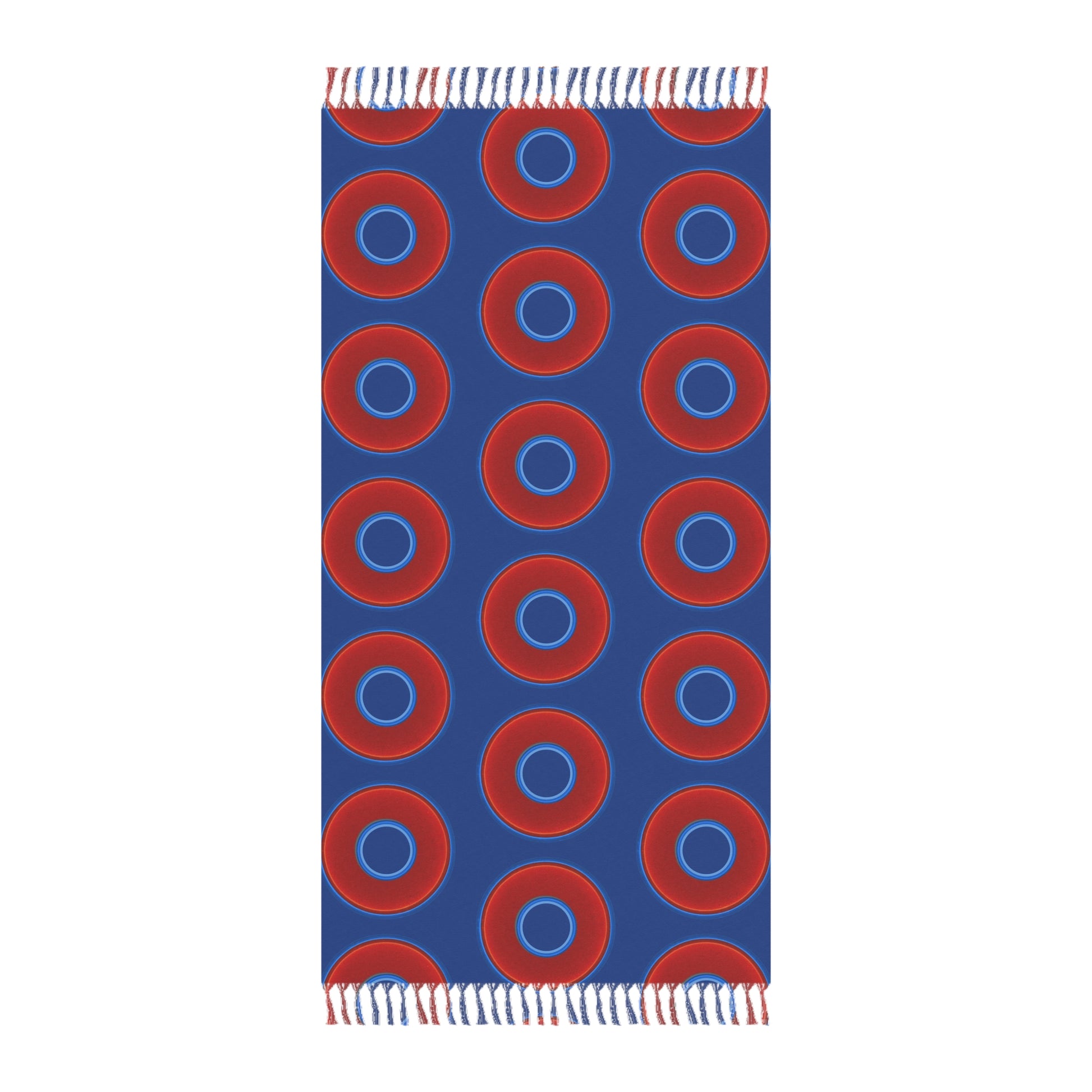 Oversized Lumpy Beach Towel - vivid red donuts w/dark blue background