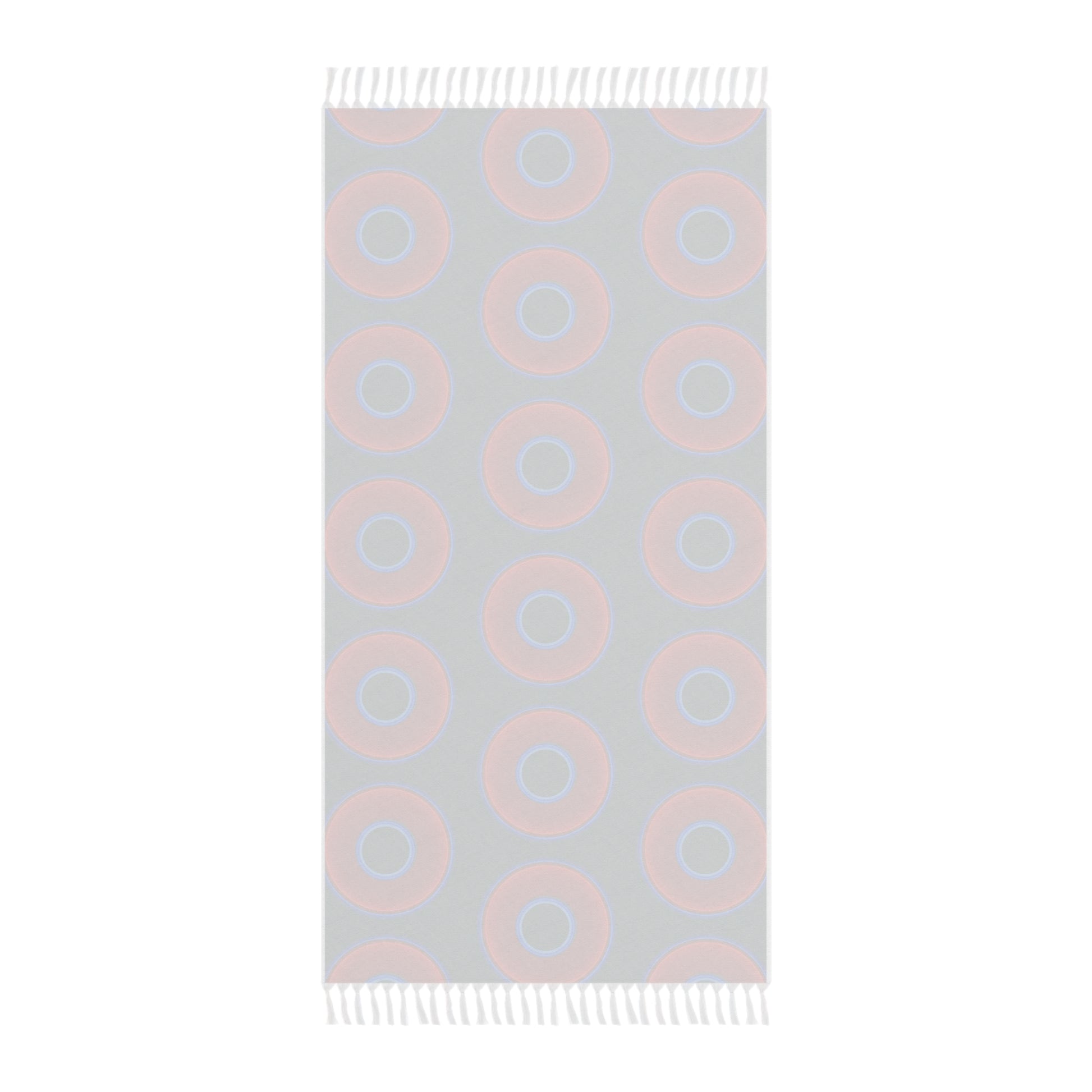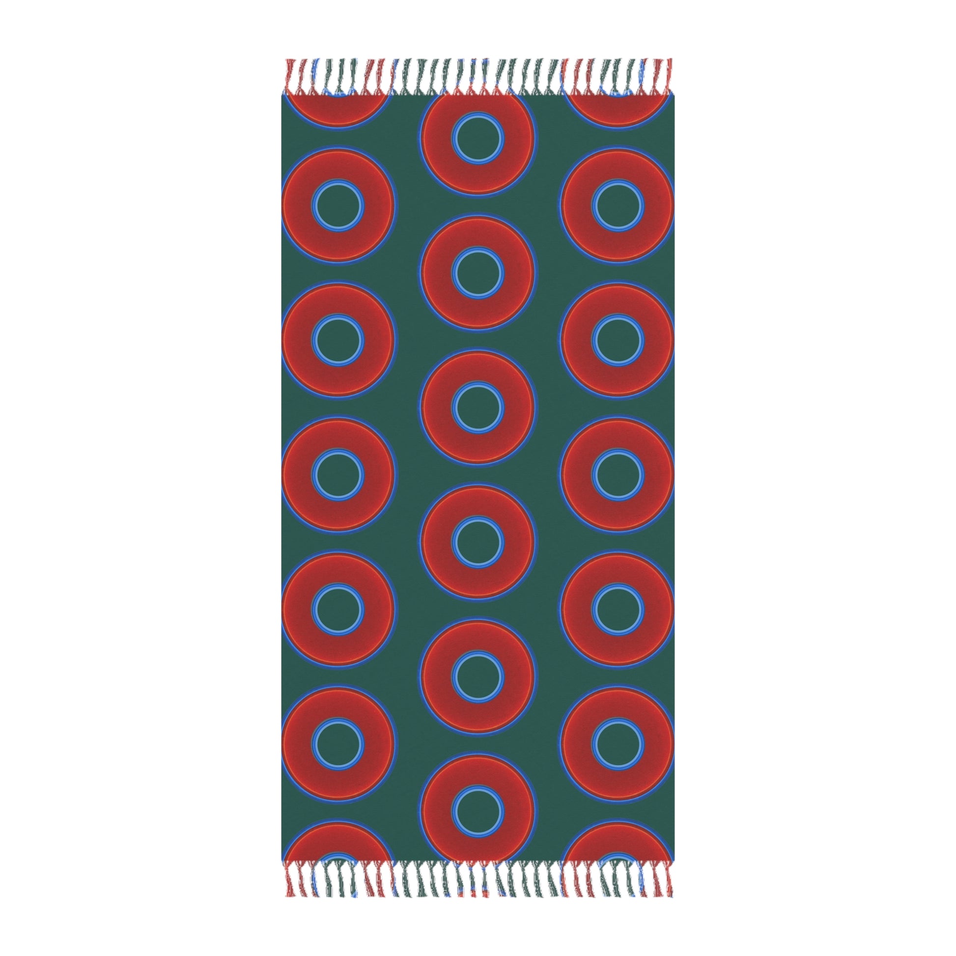 Oversized Lumpy Beach Towel - vivid red donuts w/dark Fenway green background