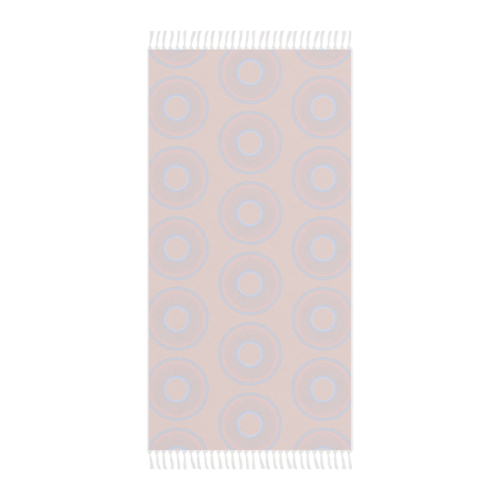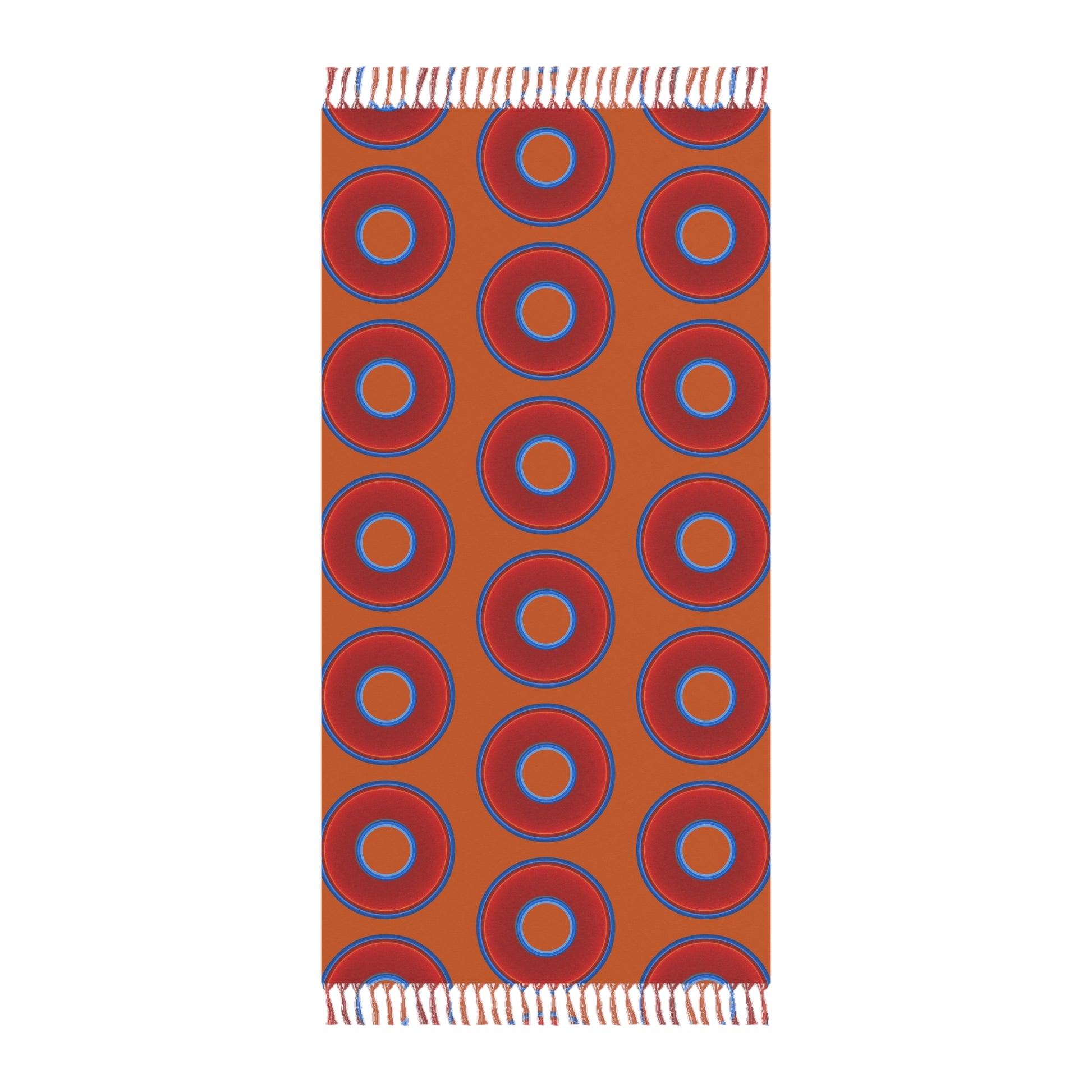 Oversized Lumpy Beach Towel - vivid red donuts w/dark orange background