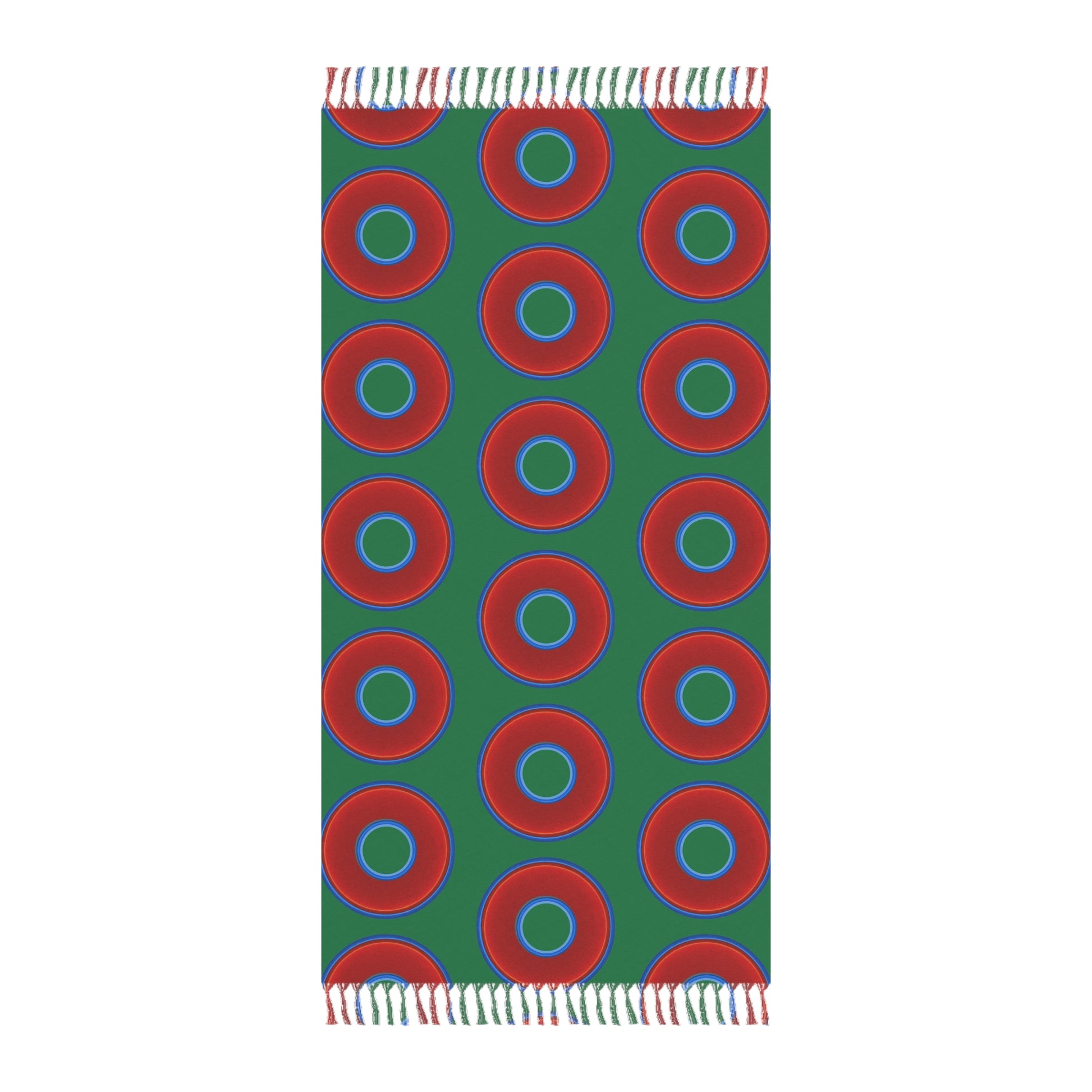 Oversized Lumpy Beach Towel - vivid red donuts w/green background