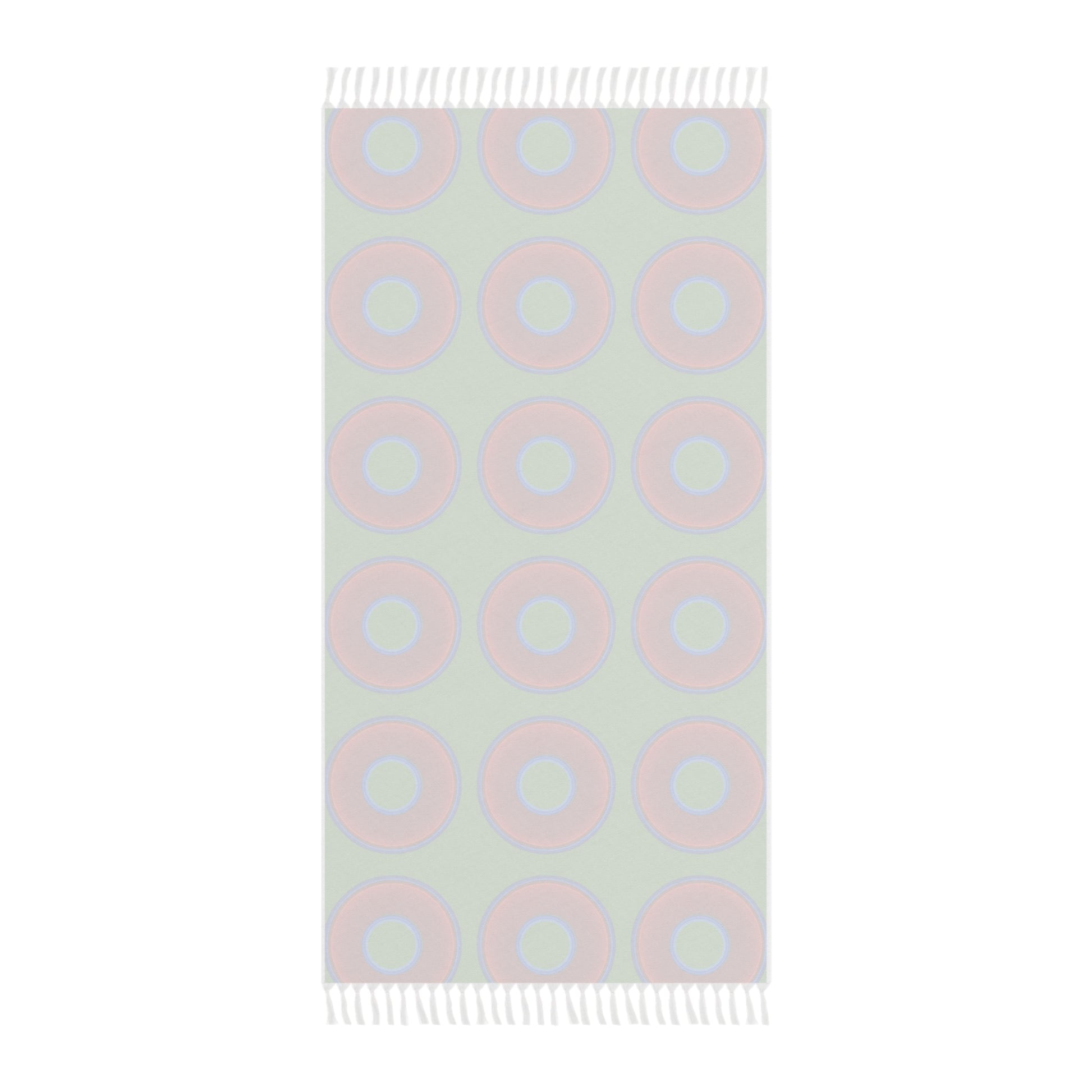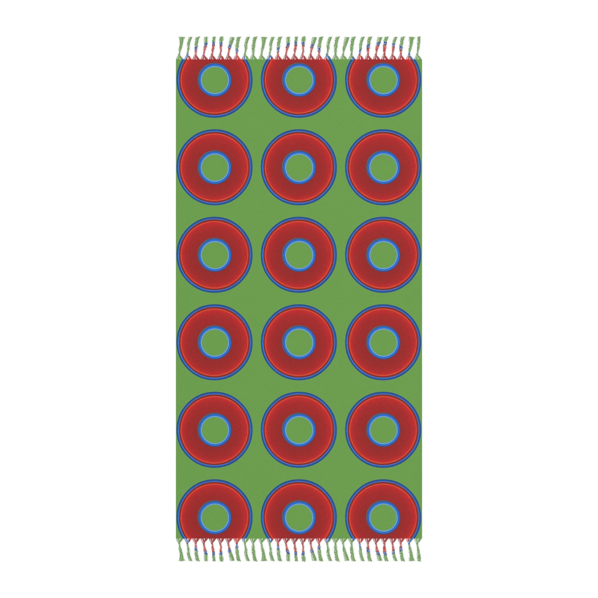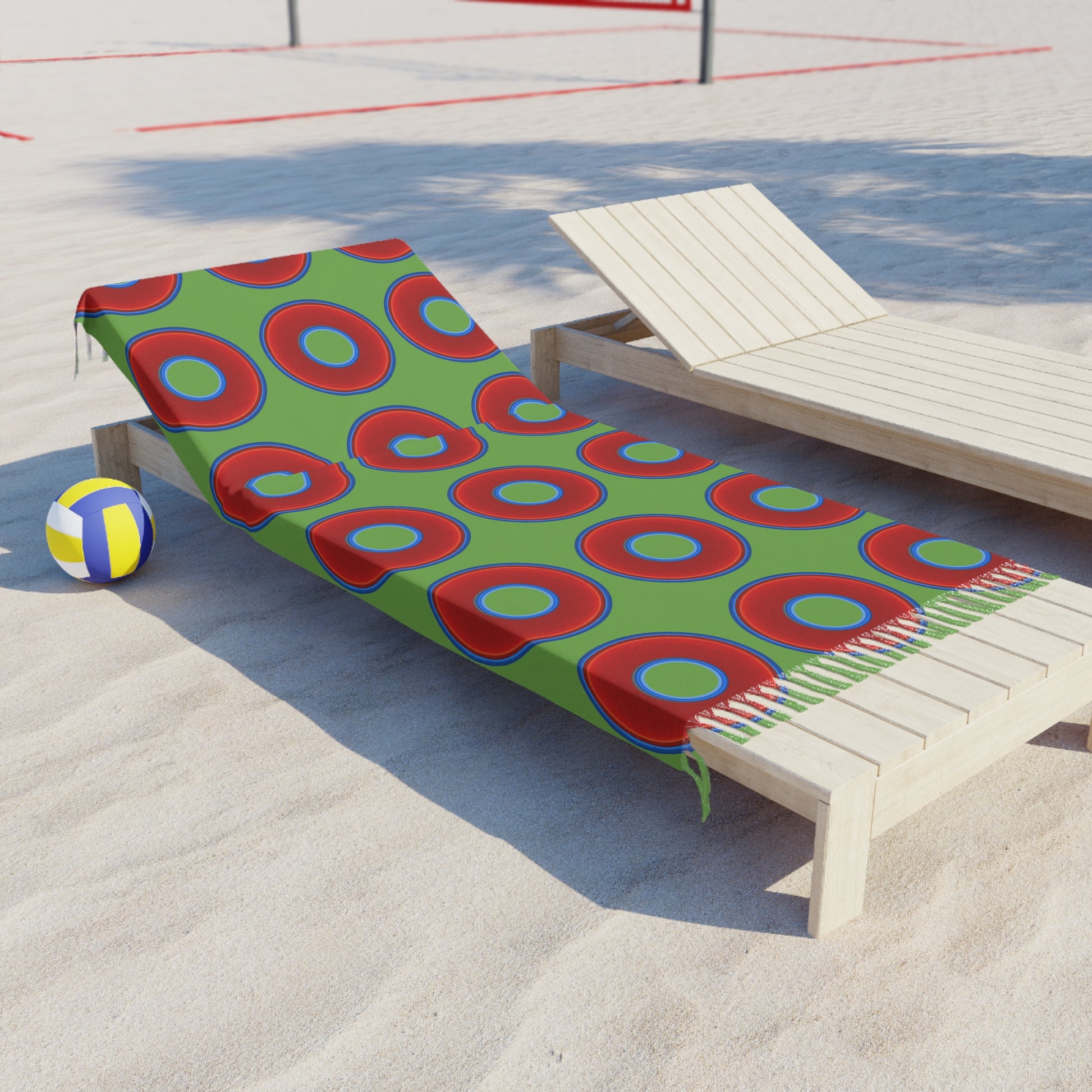 Oversized Lumpy Beach Towel - vivid red donuts w/light green background