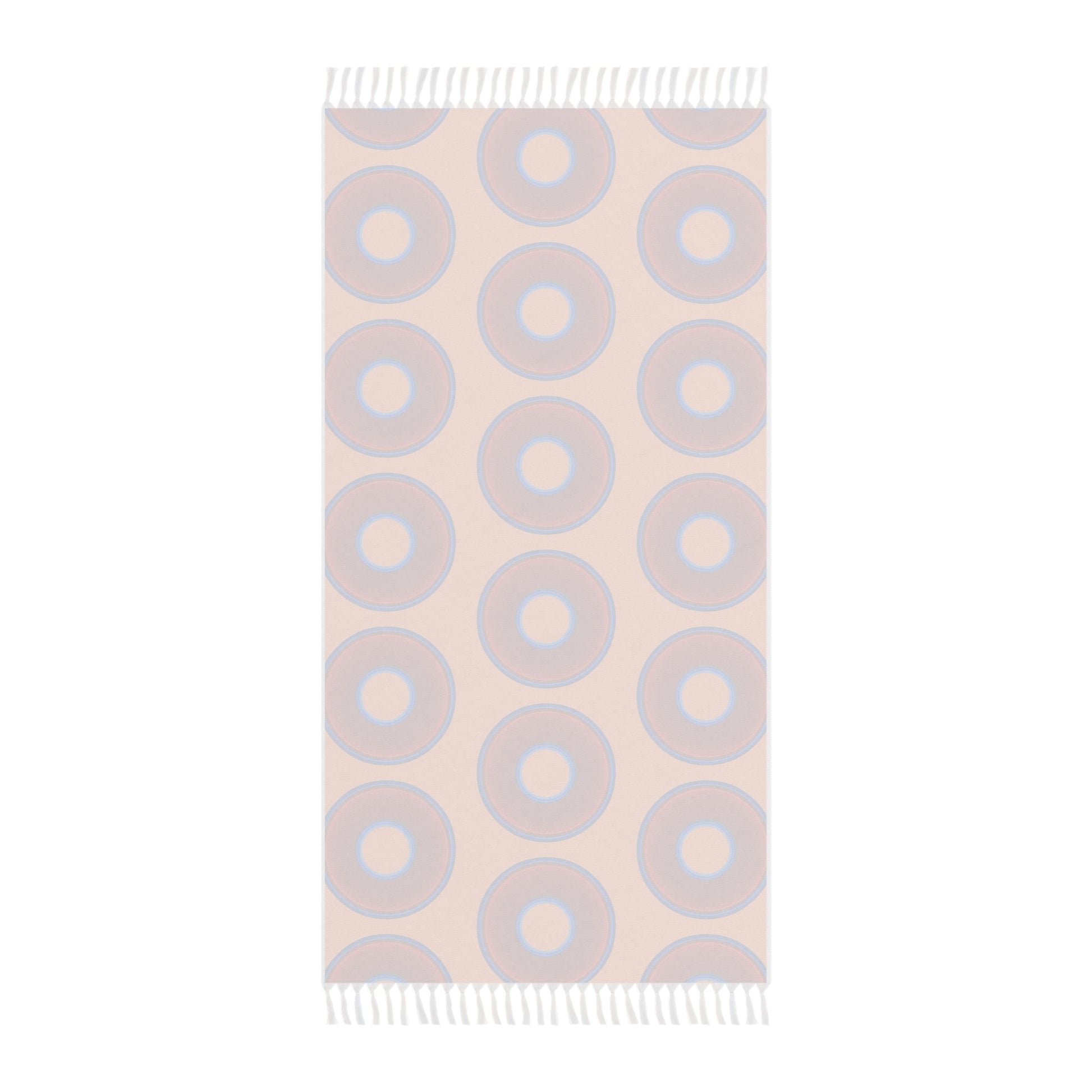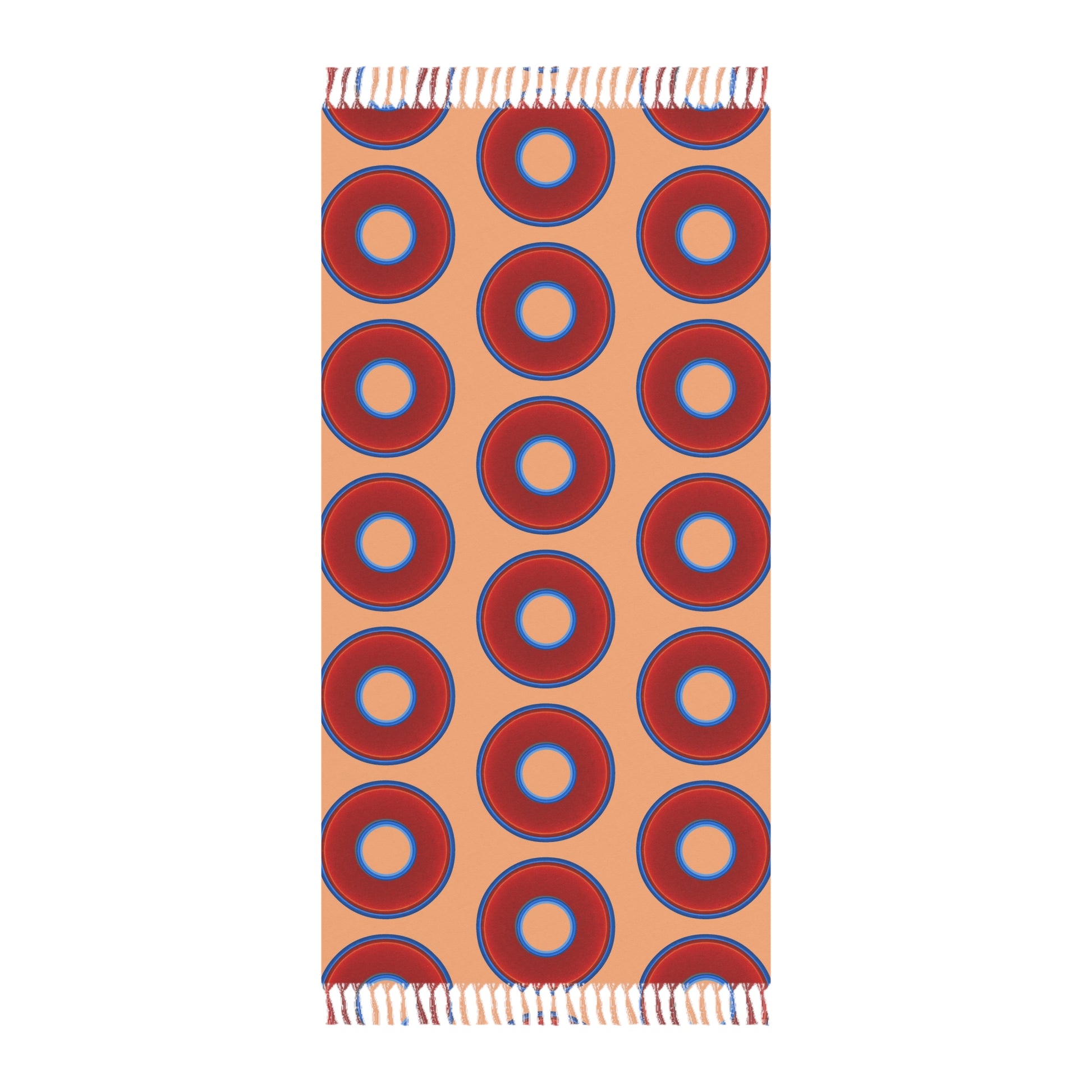 Oversized Lumpy Beach Towel - vivid red donuts w/peach background