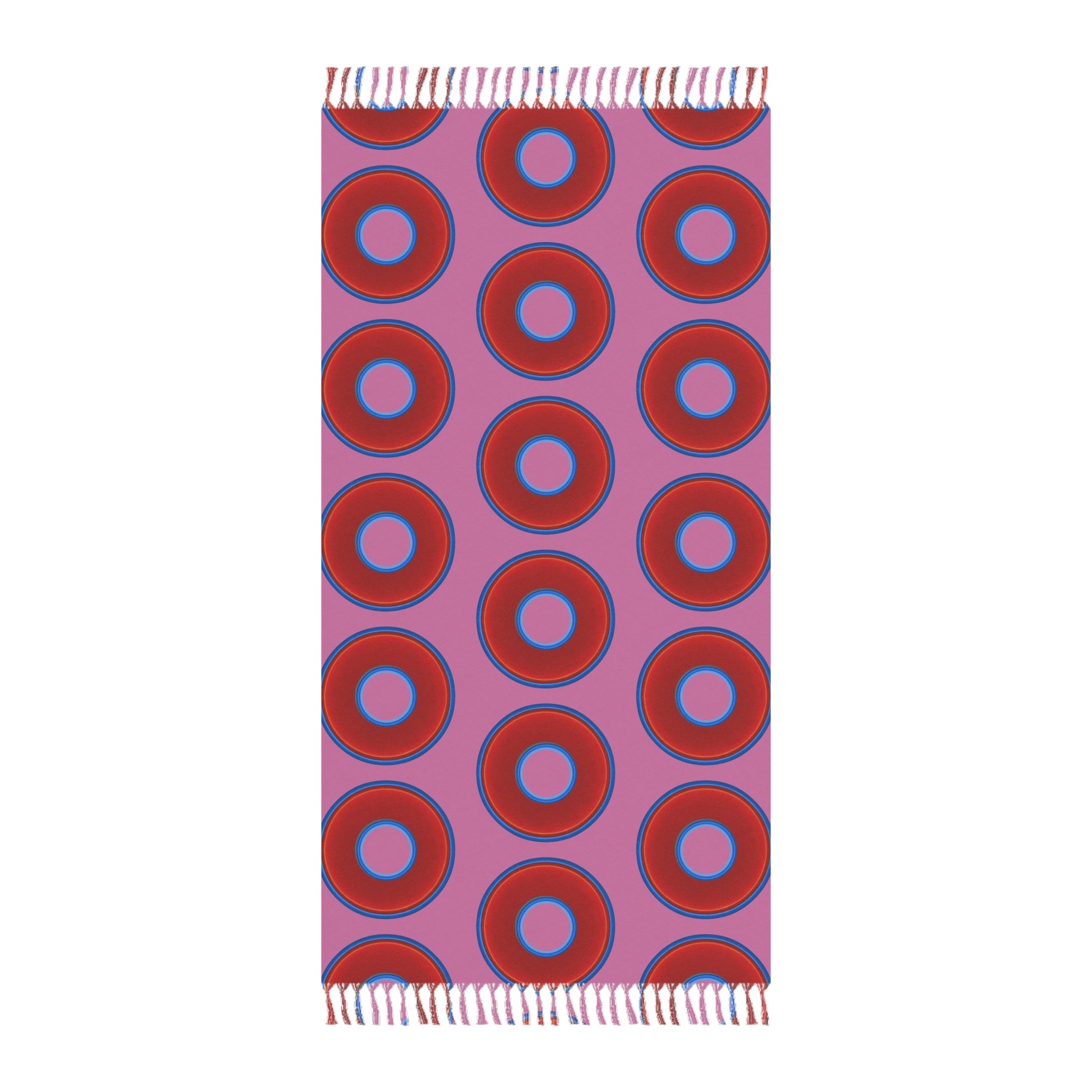 Oversized Lumpy Beach Towel - vivid red donuts w/pink background