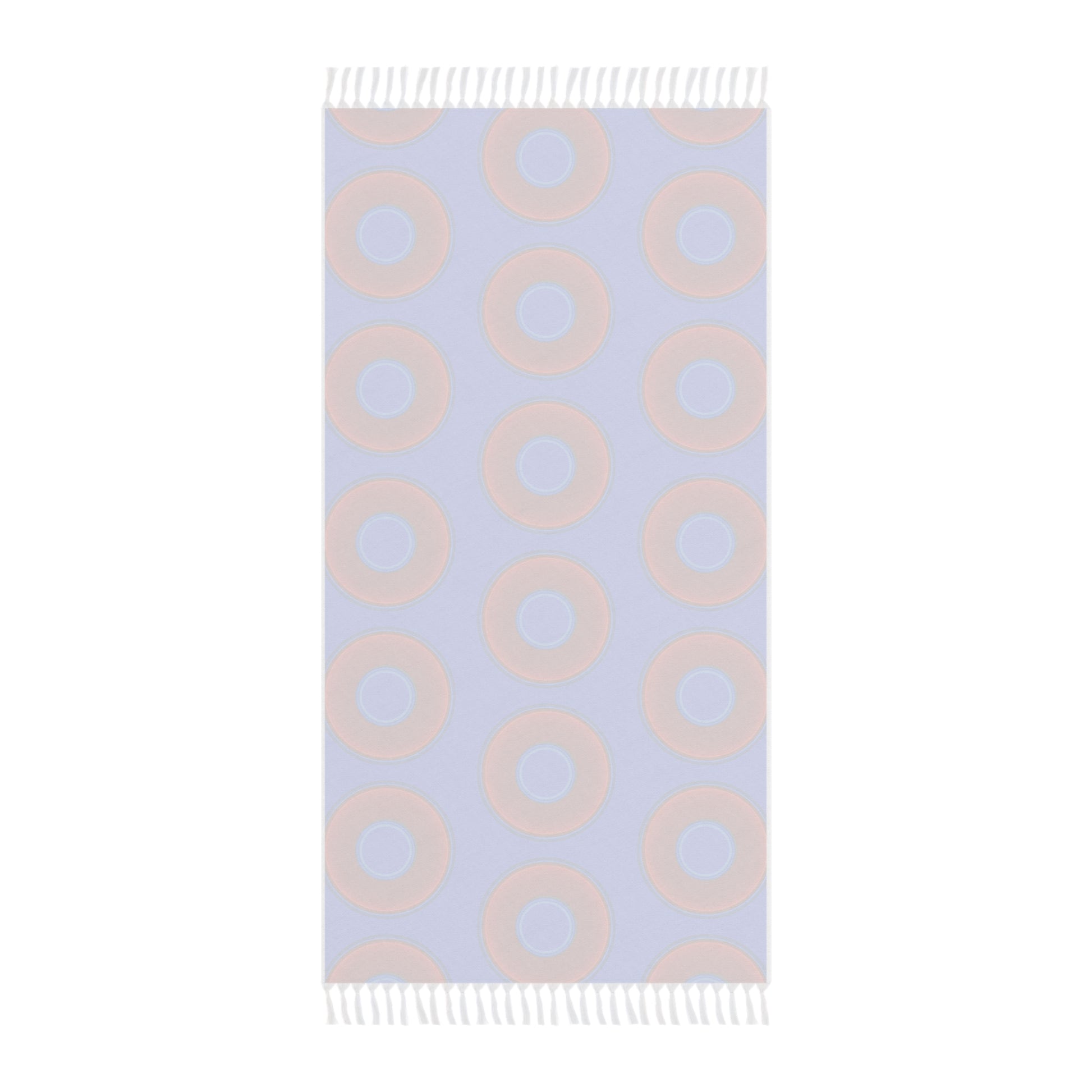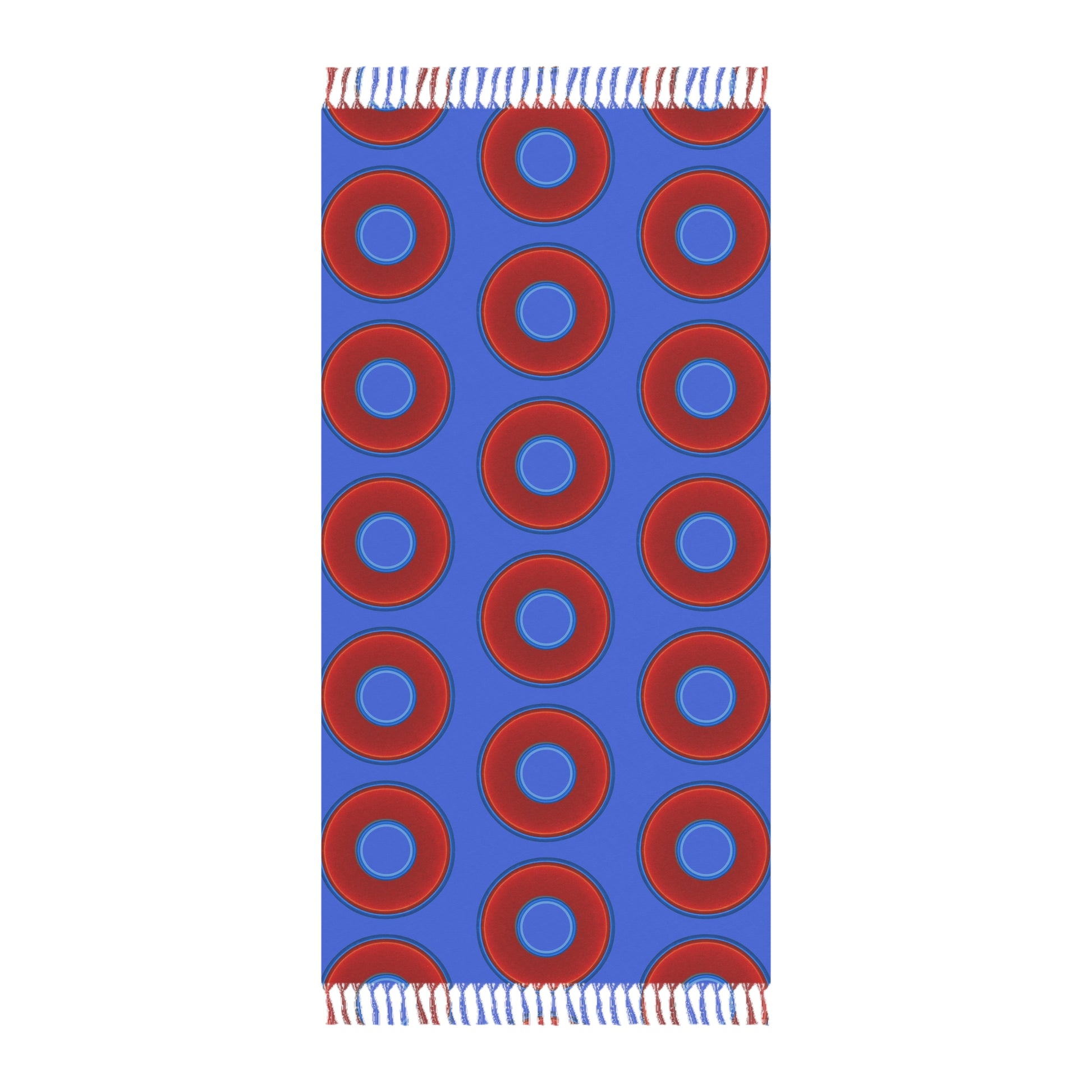 Oversized Lumpy Beach Towel - vivid red donuts w/royal blue background