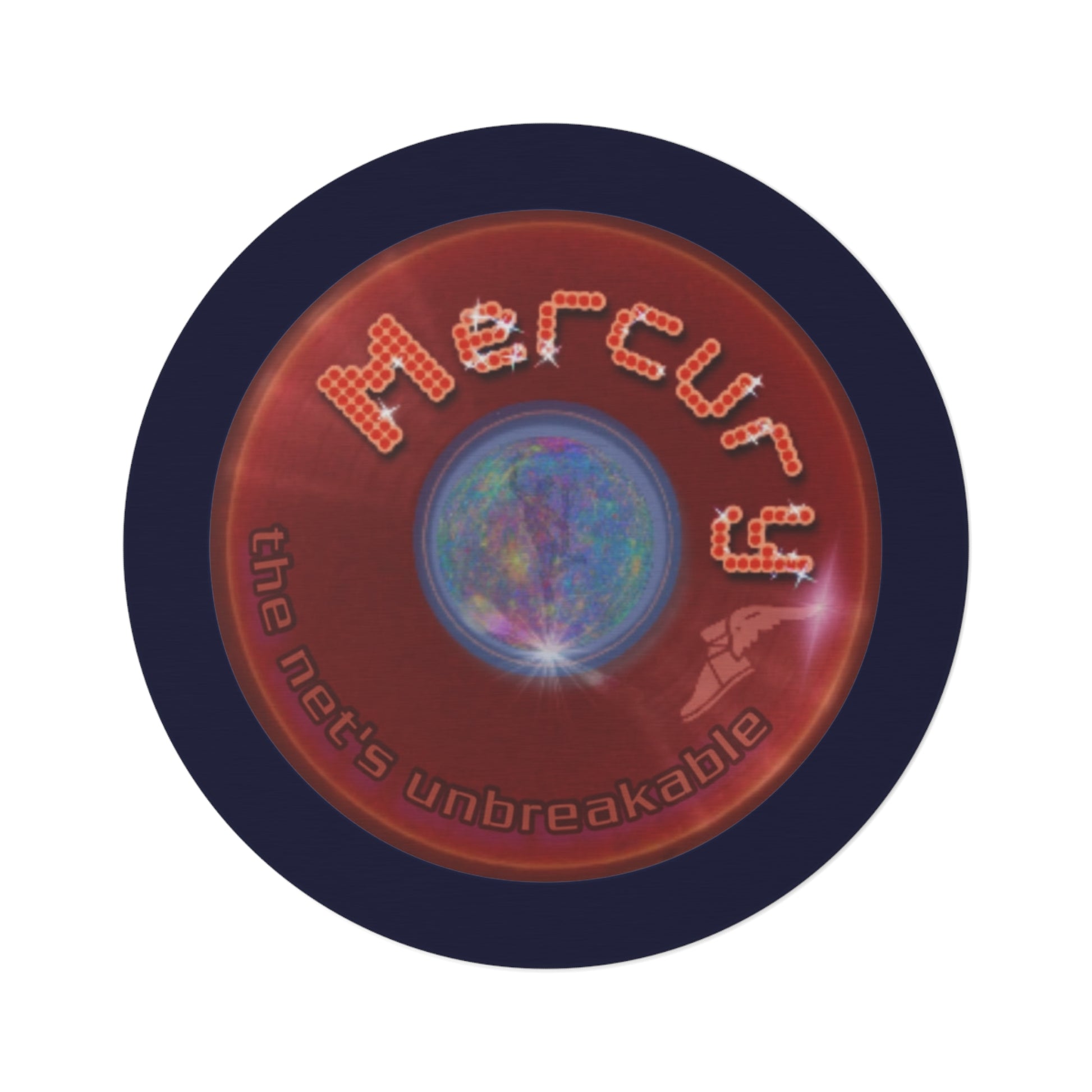 Round Room - 5 ft x 5 ft Lumpy Donut Rug - "Donut Rug of the Gods" - vivid red donut w/dark navy background - variant 5