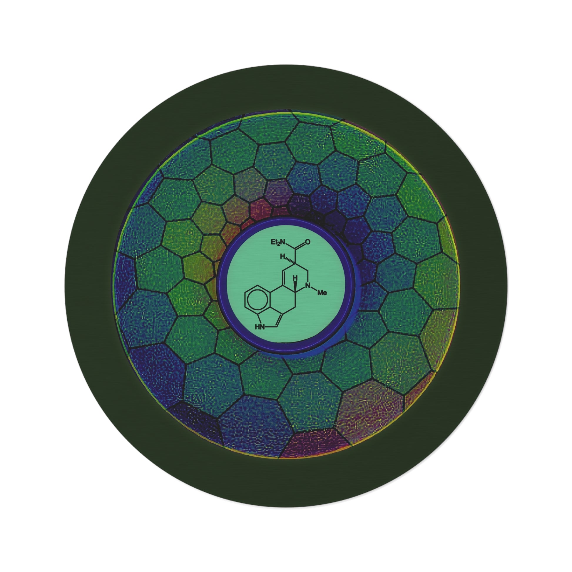Round Room - 5 ft x 5 ft Lumpy Donut Rug - "Dr. Albert Hofmann's Donut" - green hexadonut w/deep forest green background - variant 3