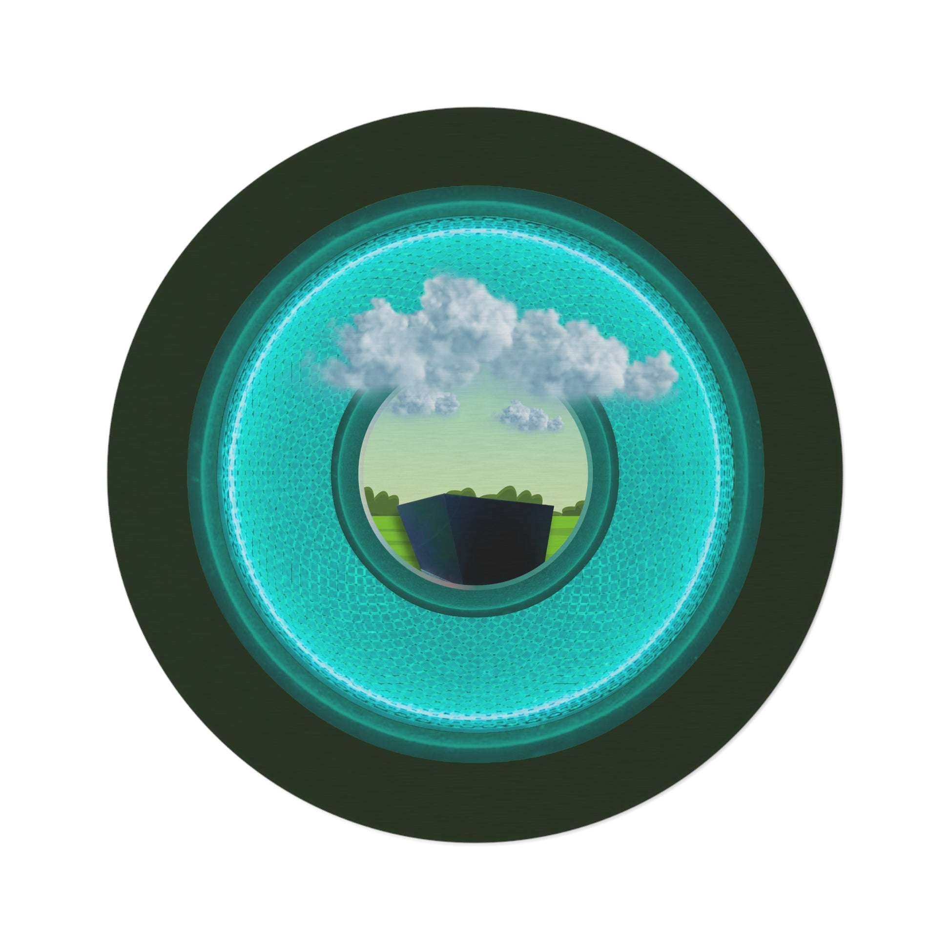 Round Room - 5 ft x 5 ft Lumpy Donut Rug - "Got Rhombus Rug?" - rustic turquoise/teal donut w/deep forest green background - variant 5