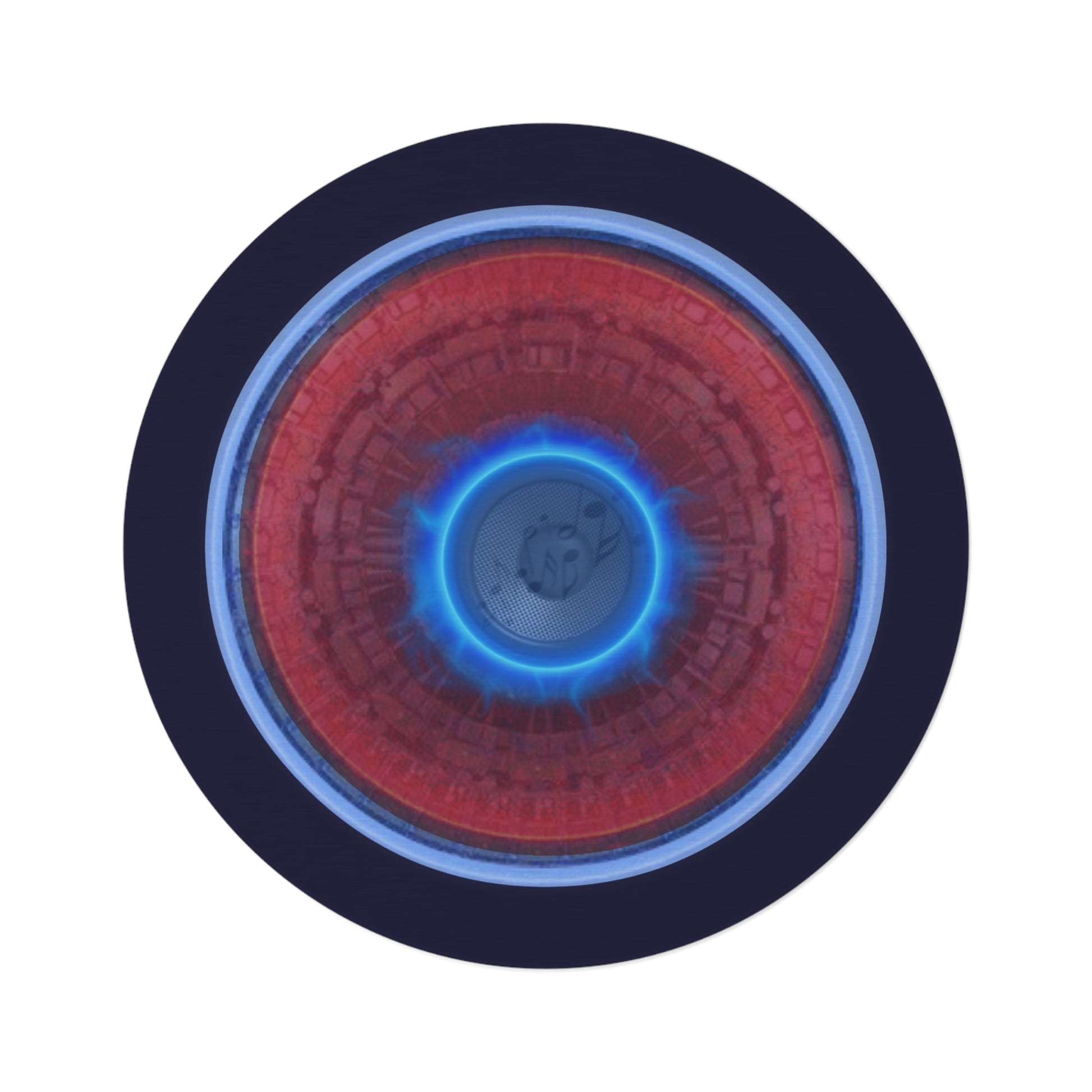 Round Room - 5 ft x 5 ft Lumpy Donut Rug - "Homer's The Perfect Donut Rug" - vivid red/blue tube donut w/midnight blue background - variant 1
