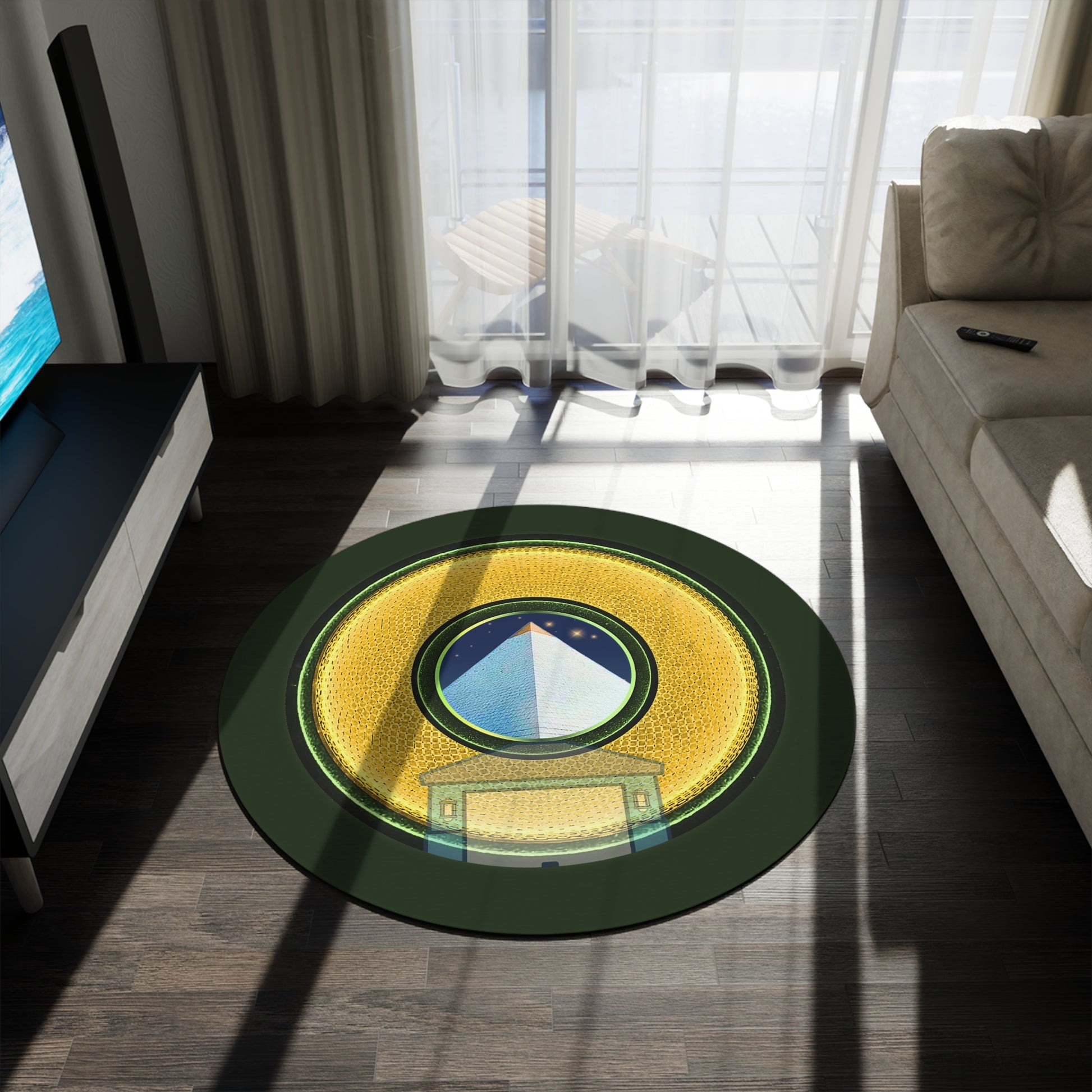 Round Room - 5 ft x 5 ft Lumpy Donut Rug - "Limestone Donut Rugs so Large " - rustic golden donut w/deep forest green background - variant 4