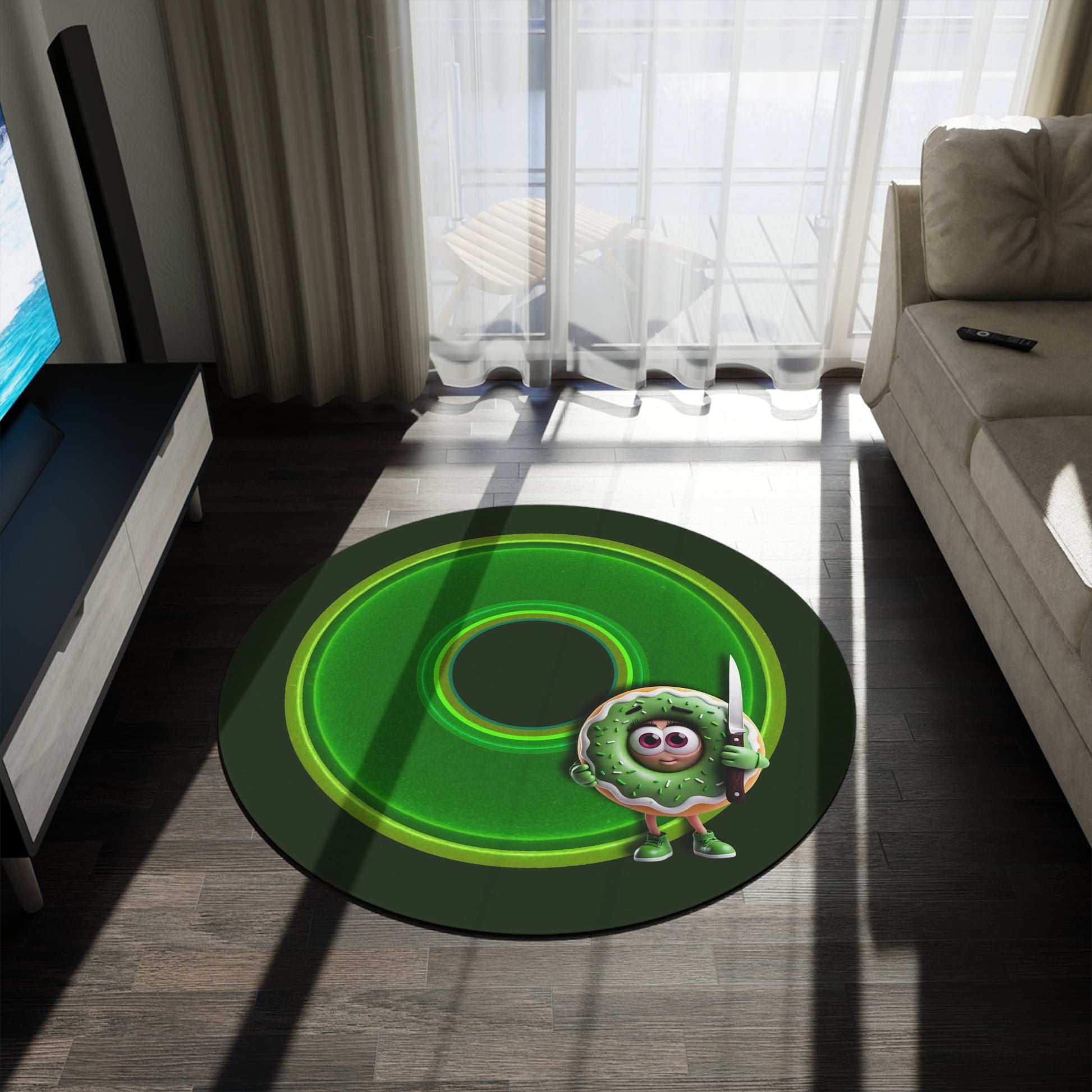 Round Room - 5 ft x 5 ft Lumpy Donut Rug - "My Phriend the Donut Rug" - vivid green donut w/deep forest green background - variant 4