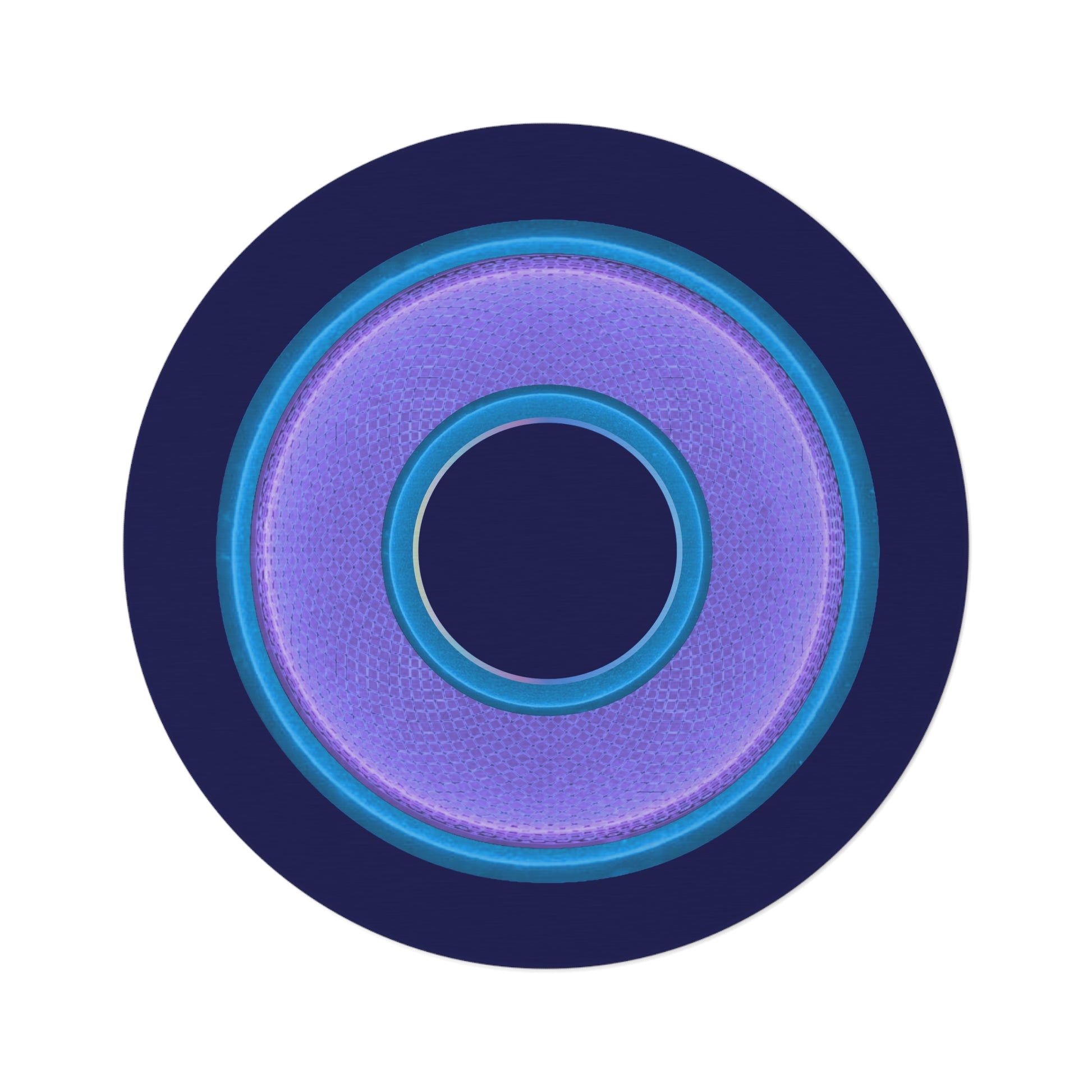 Round Room - 5 ft x 5 ft Lumpy Donut Rug - "Plain Donut" - rustic light purple/blue donut w/navy background