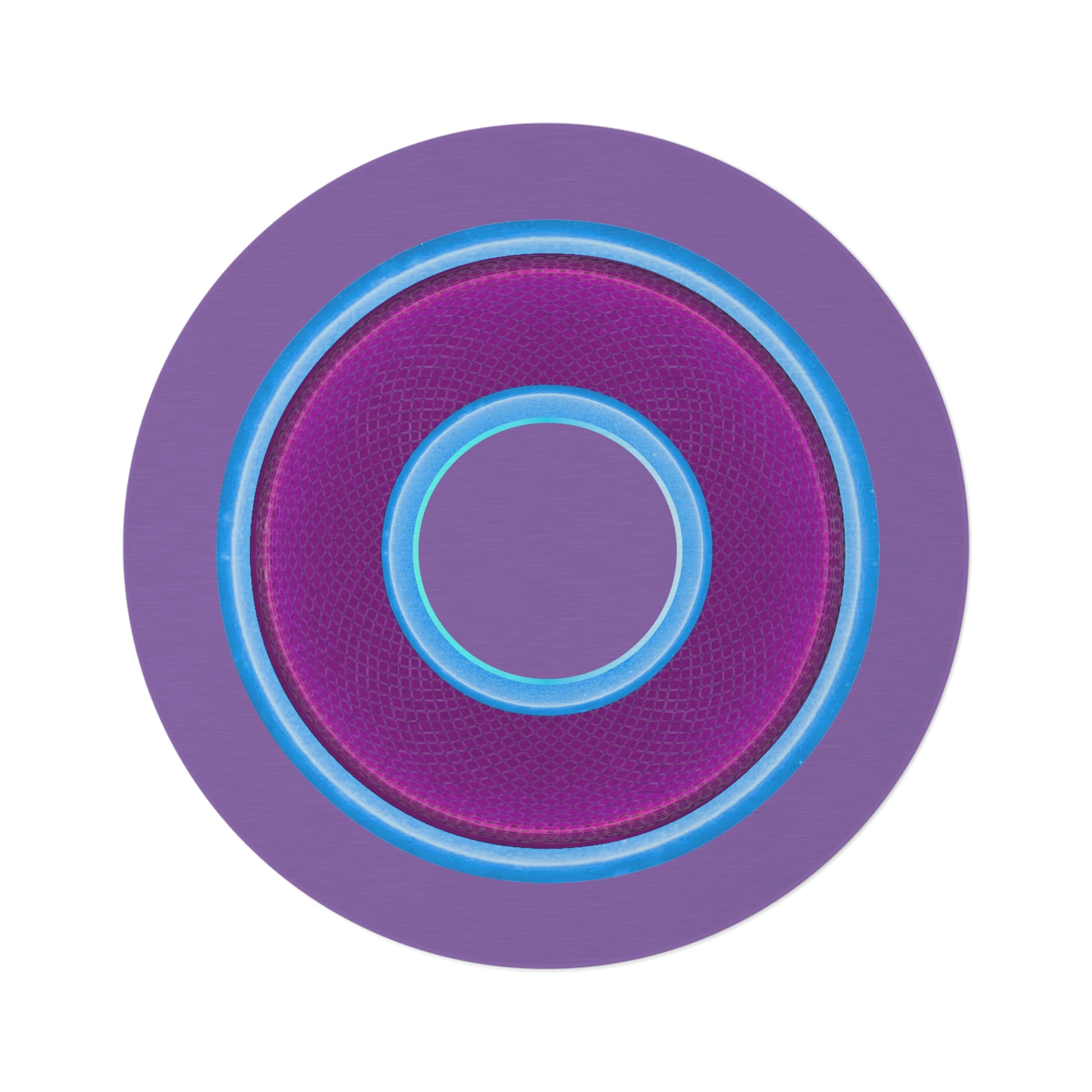 Round Room - 5 ft x 5 ft Lumpy Donut Rug - "Plain Donut" - rustic magenta/light blue donut w/light purple background