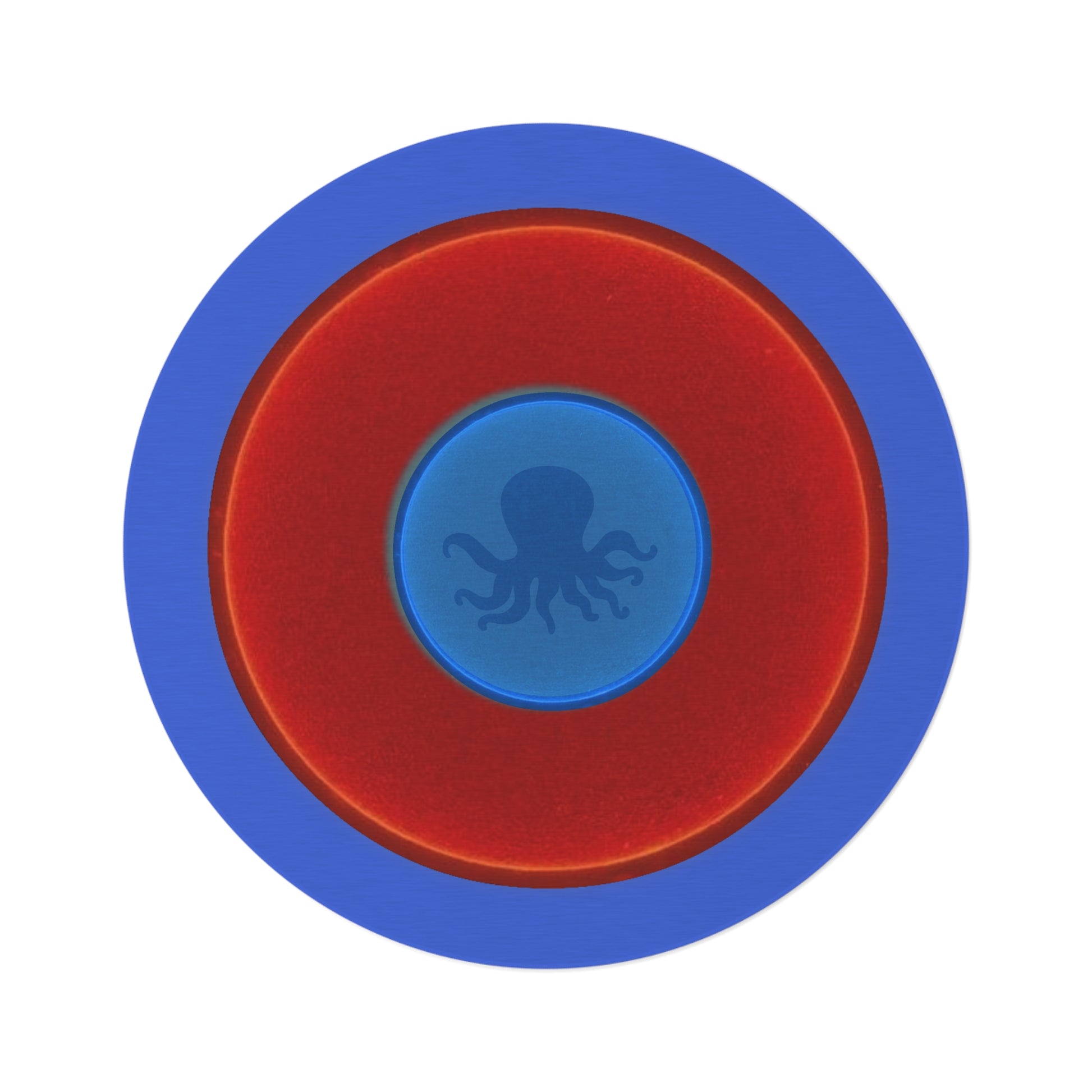 Round Room - 5 ft x 5 ft Lumpy Donut Rug - "Roger Moore's Donut" - vivid red donut w/royal blue background - variant 1