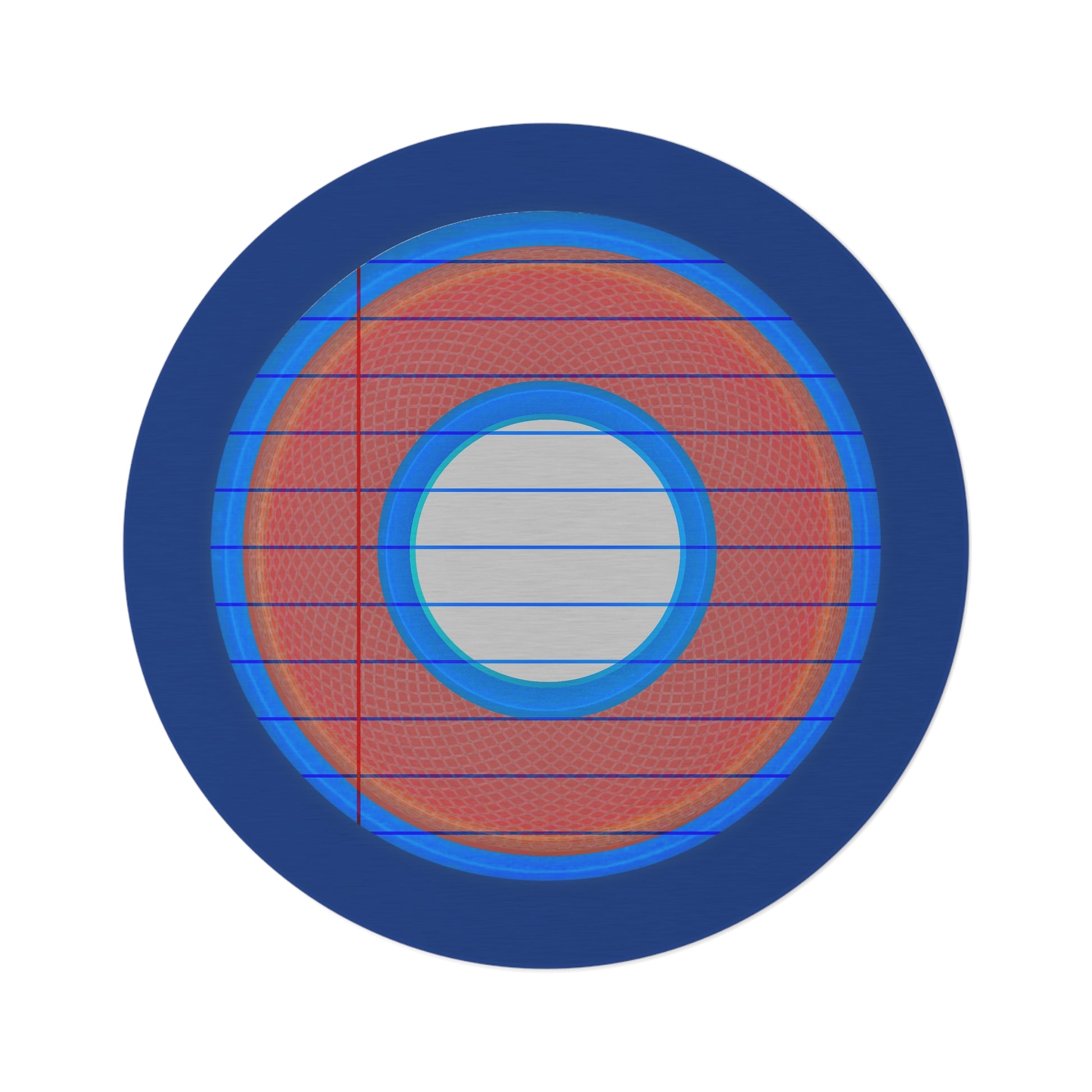 Round Room - 5 ft x 5 ft Lumpy Donut Rug - "Tasty Donut Carpet" - rustic red/blue lined donut w/dark blue background - variant 2