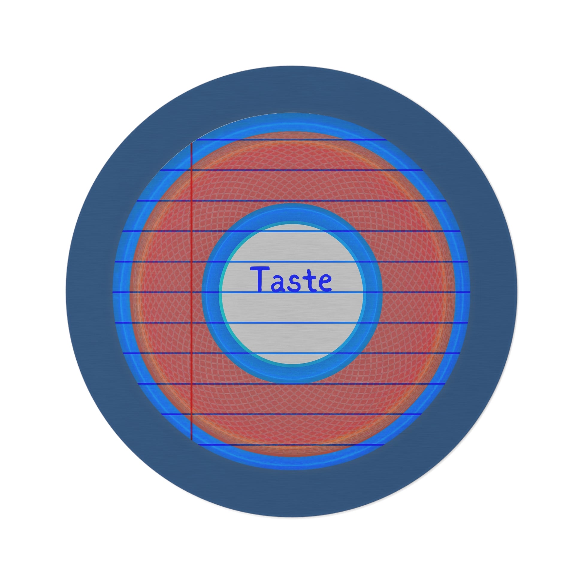 Round Room - 5 ft x 5 ft Lumpy Donut Rug - "Tasty Donut Carpet" - rustic red/blue lined donut w/light navy background - variant 1