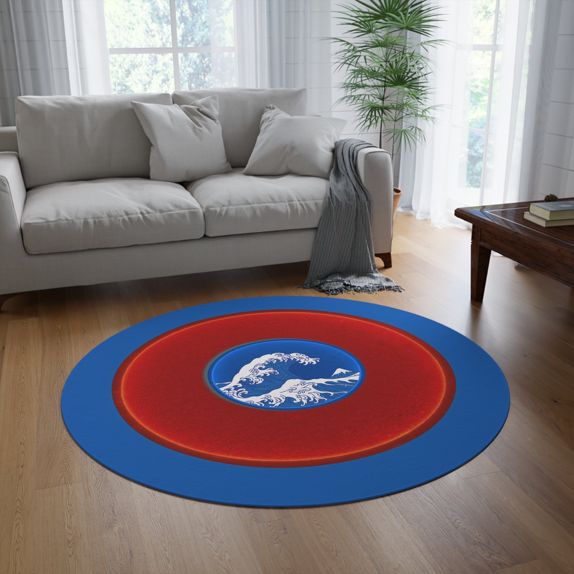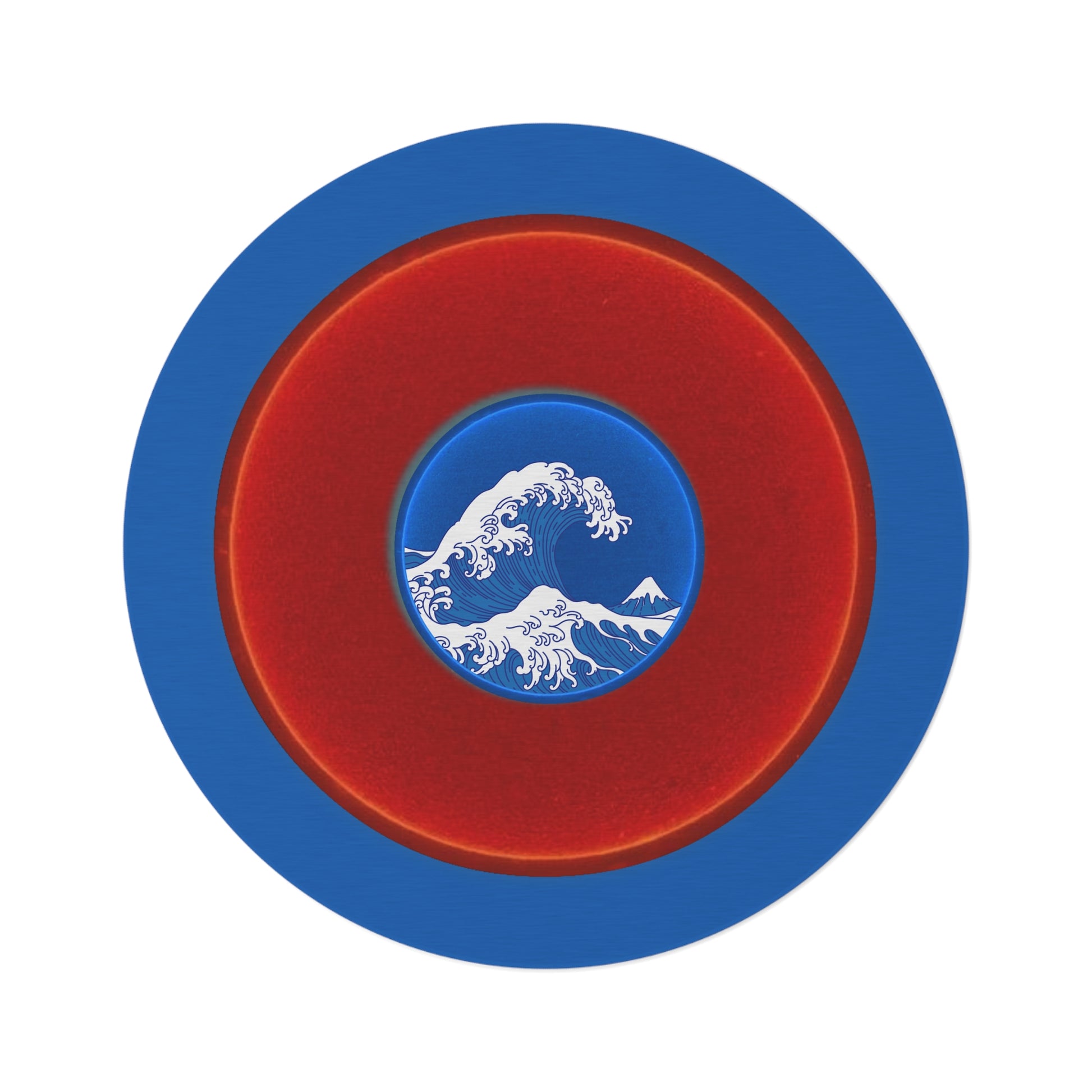 Round Room - 5 ft x 5 ft Lumpy Donut Rug - "The Donut Rug so Wide" - vivid red donut w/dark royal blue background - variant 2