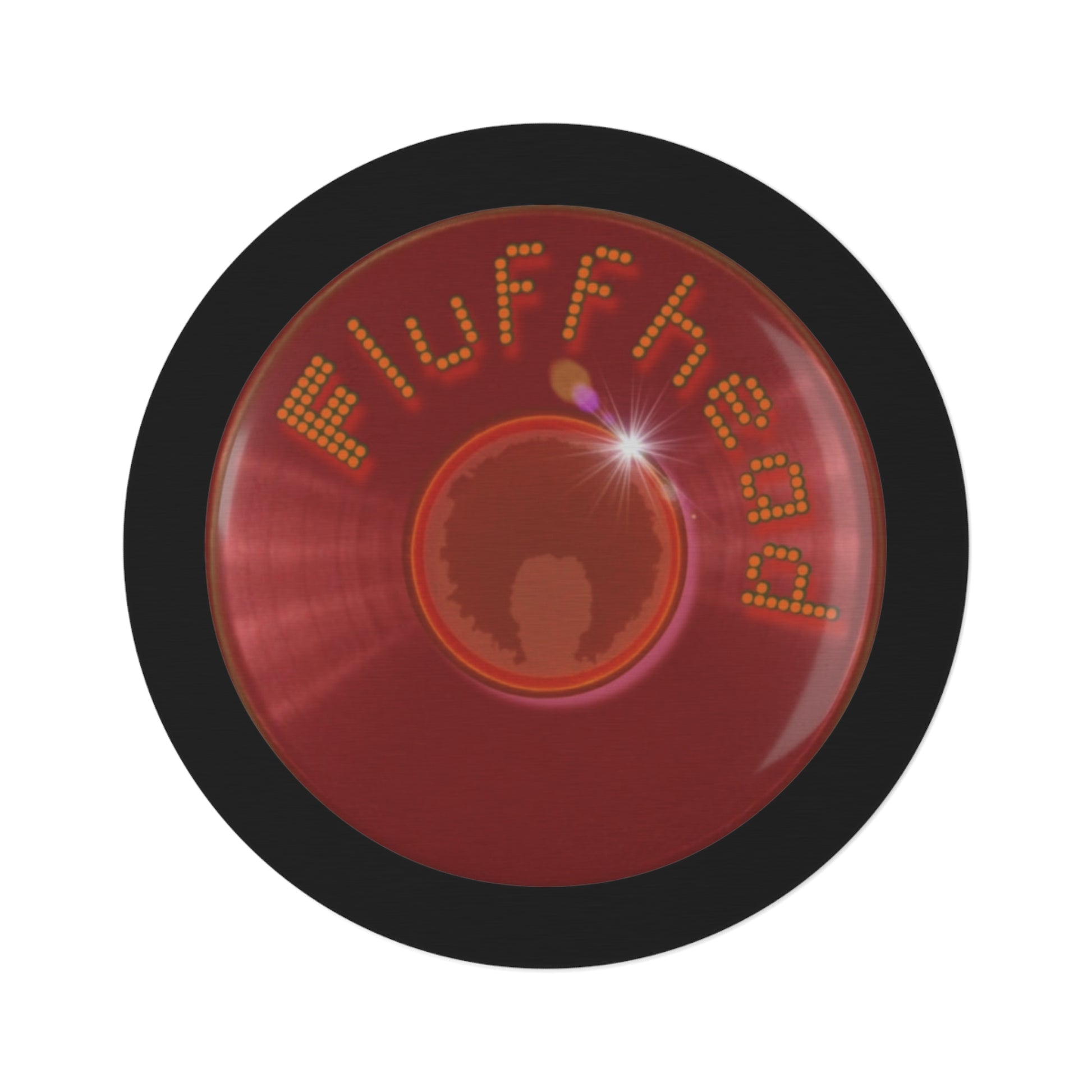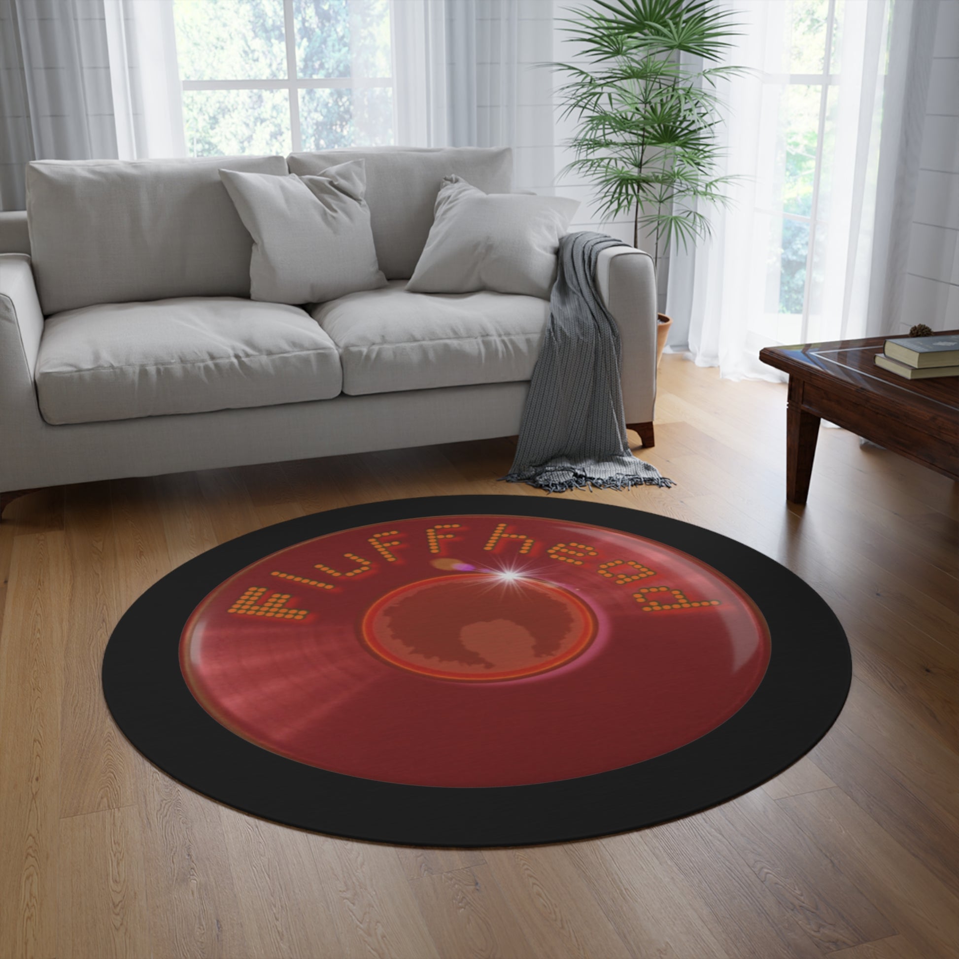 Round Room - 5 ft x 5 ft Lumpy Donut Rug - "The Fluffernutter Donut Rug" - vivid red record donut w/black background