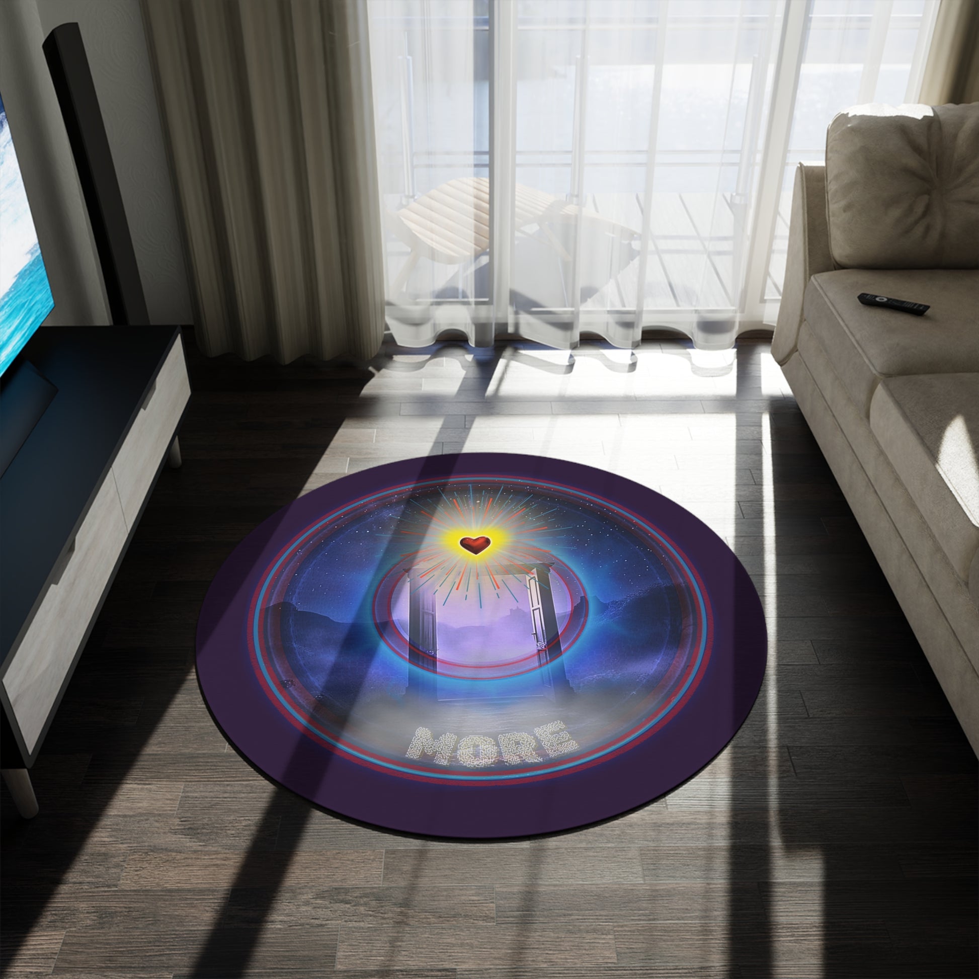 Round Room - 5 ft x 5 ft Lumpy Donut Rug - "The More Charitable Donut Rug" - vivid blue/red pic donut w/midnight purple background [*Charitable Donut]