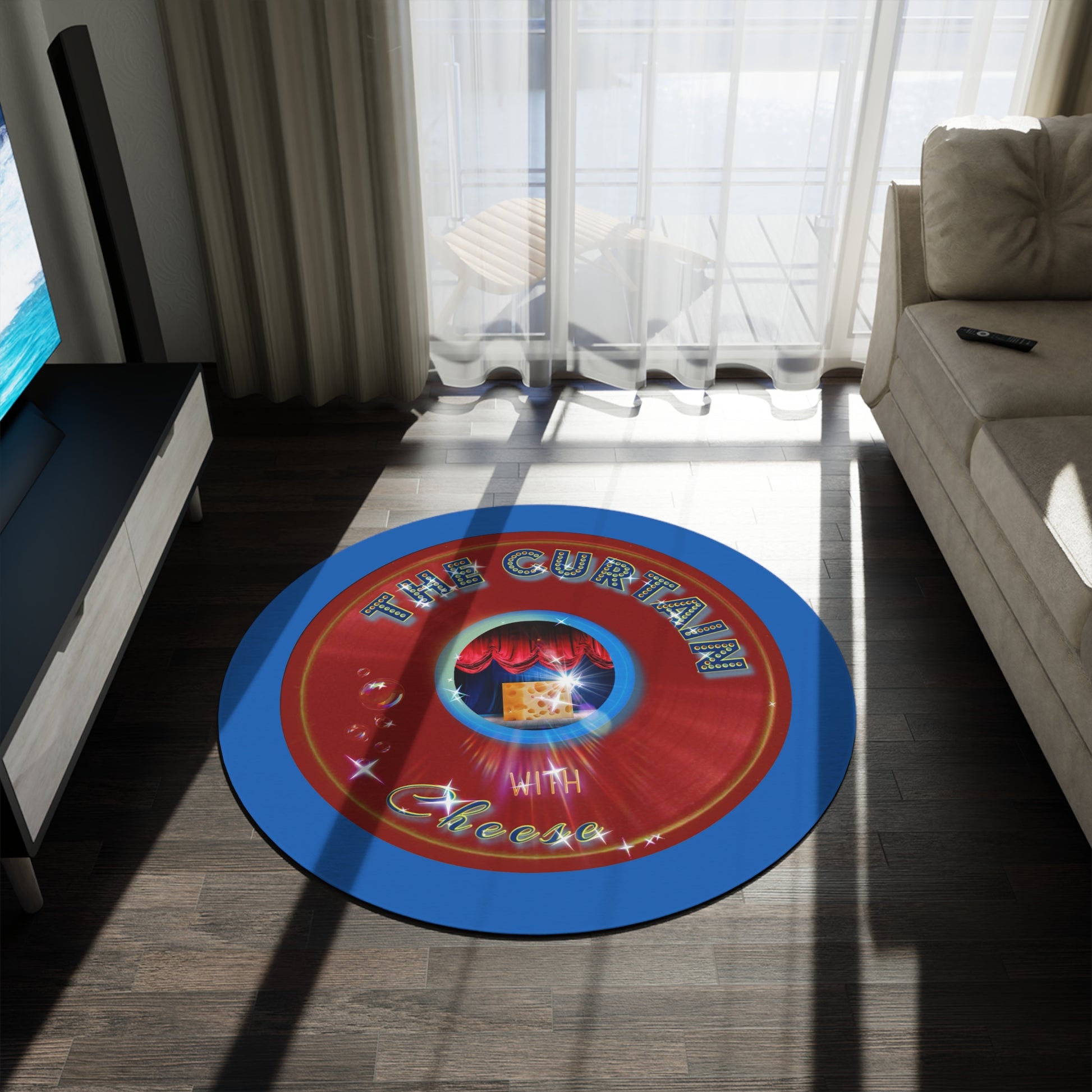 Round Room - 5 ft x 5 ft Lumpy Donut Rug - "The Official Donut Rug w/" - vivid red donut w/dark royal blue background - variant 2