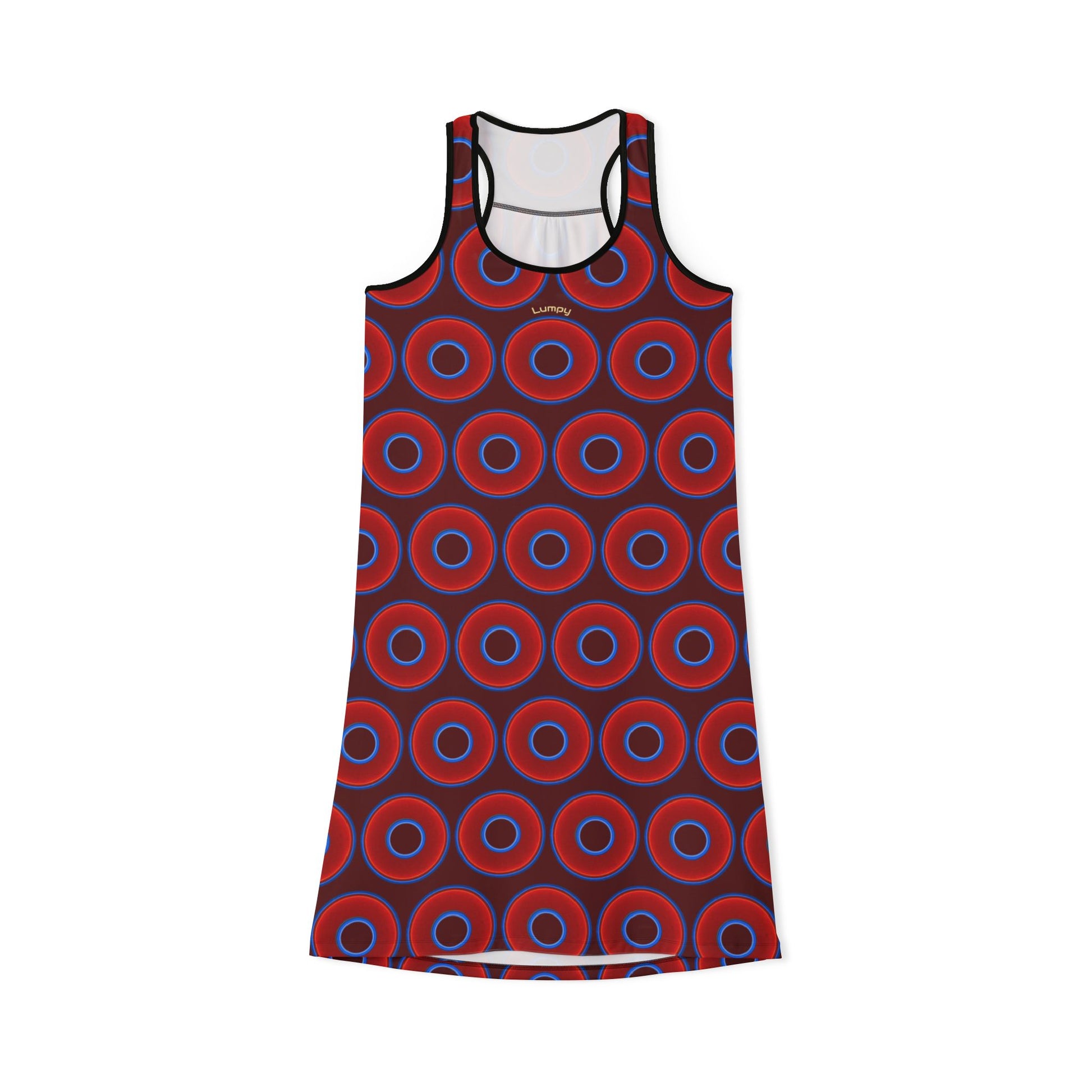 Tela's Lumpy Racerback Donut Dress - red vivid donut print w/dark red background