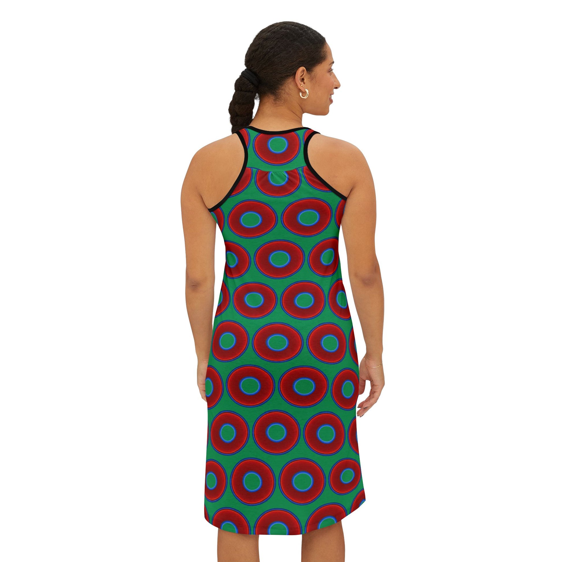 Tela's Lumpy Racerback Donut Dress - red vivid donut print w/jade green background