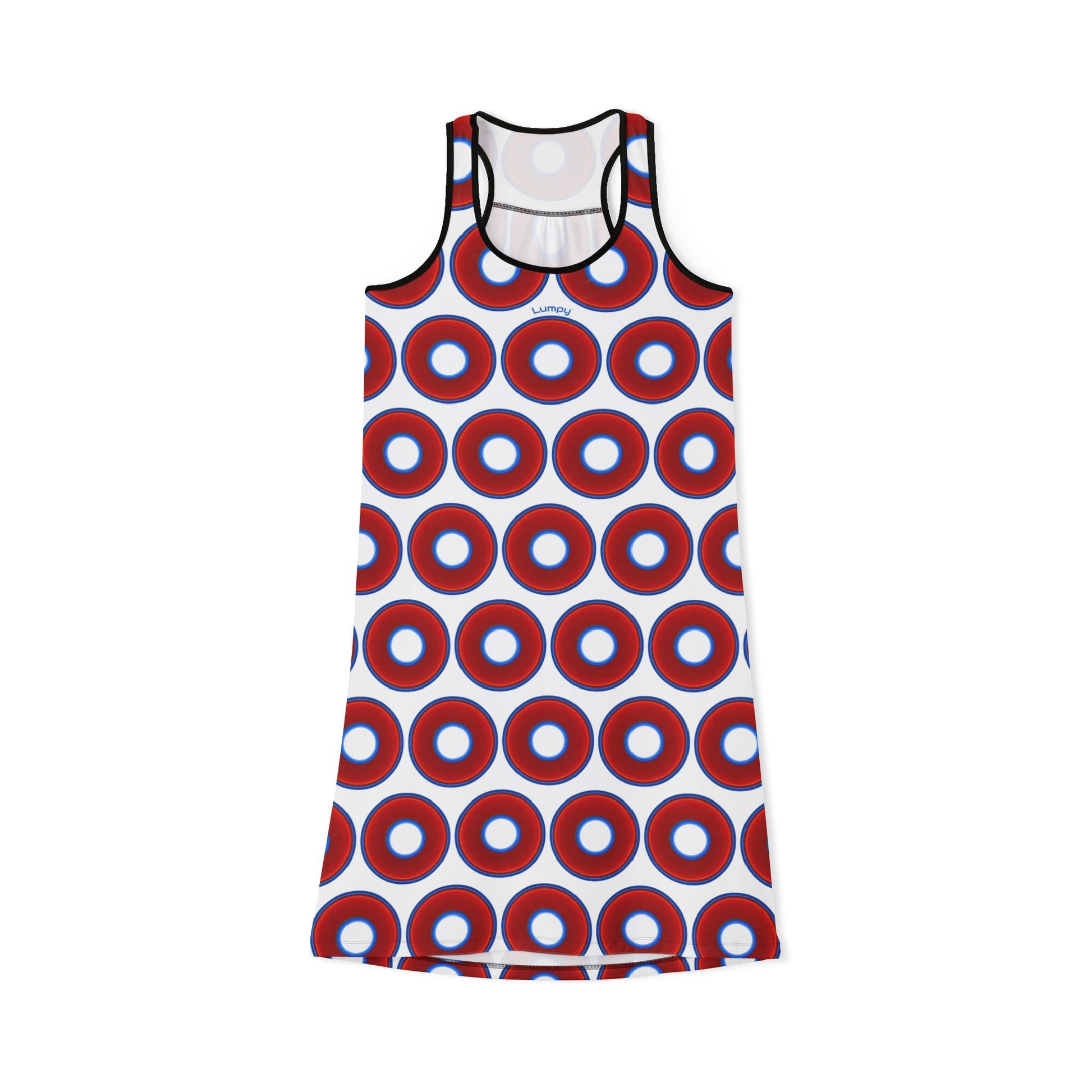 Tela's Lumpy Racerback Donut Dress - red vivid donut print w/white background