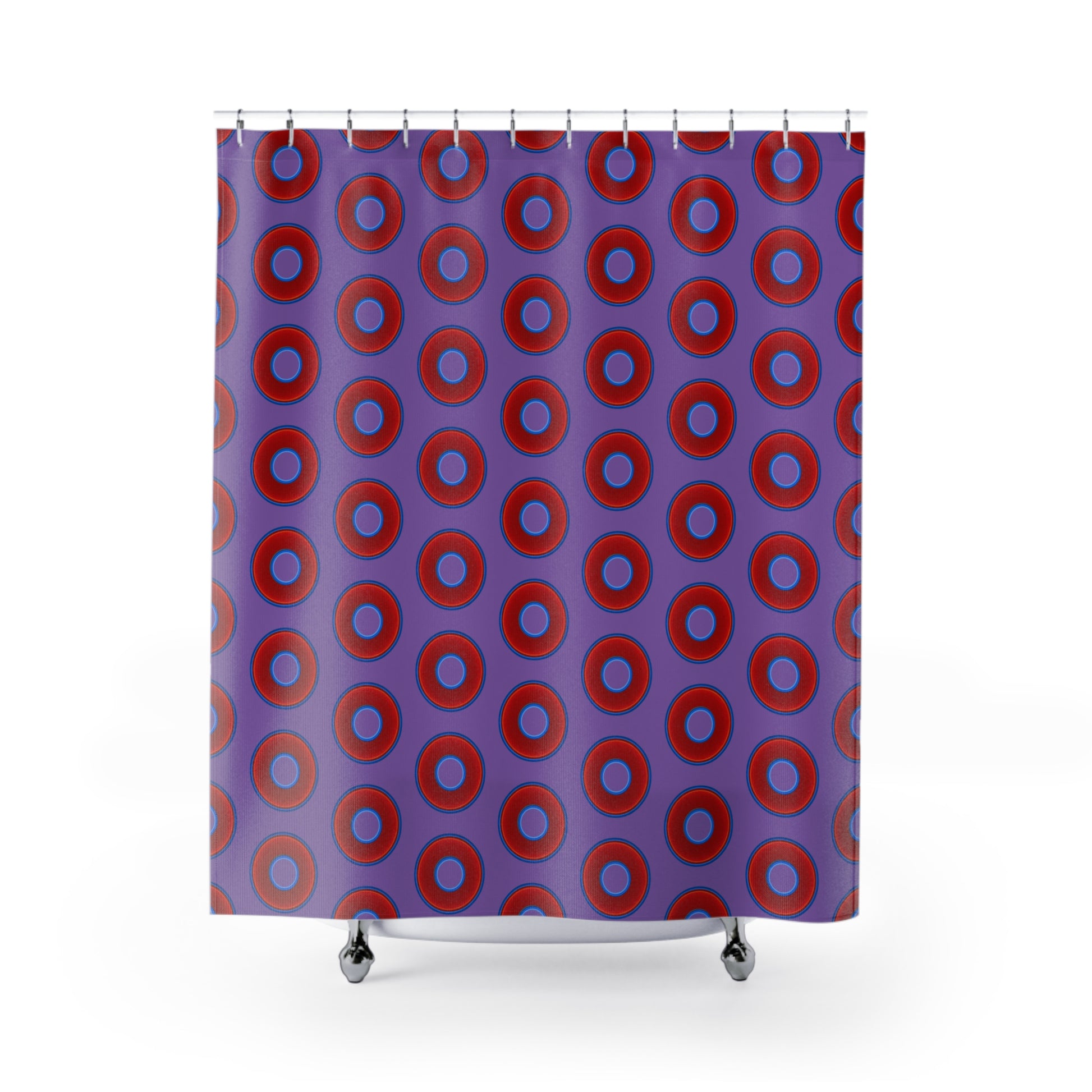 The Curtain With "Donuts" - Lumpy Bath Time Fun - vivid red donuts w/light purple background
