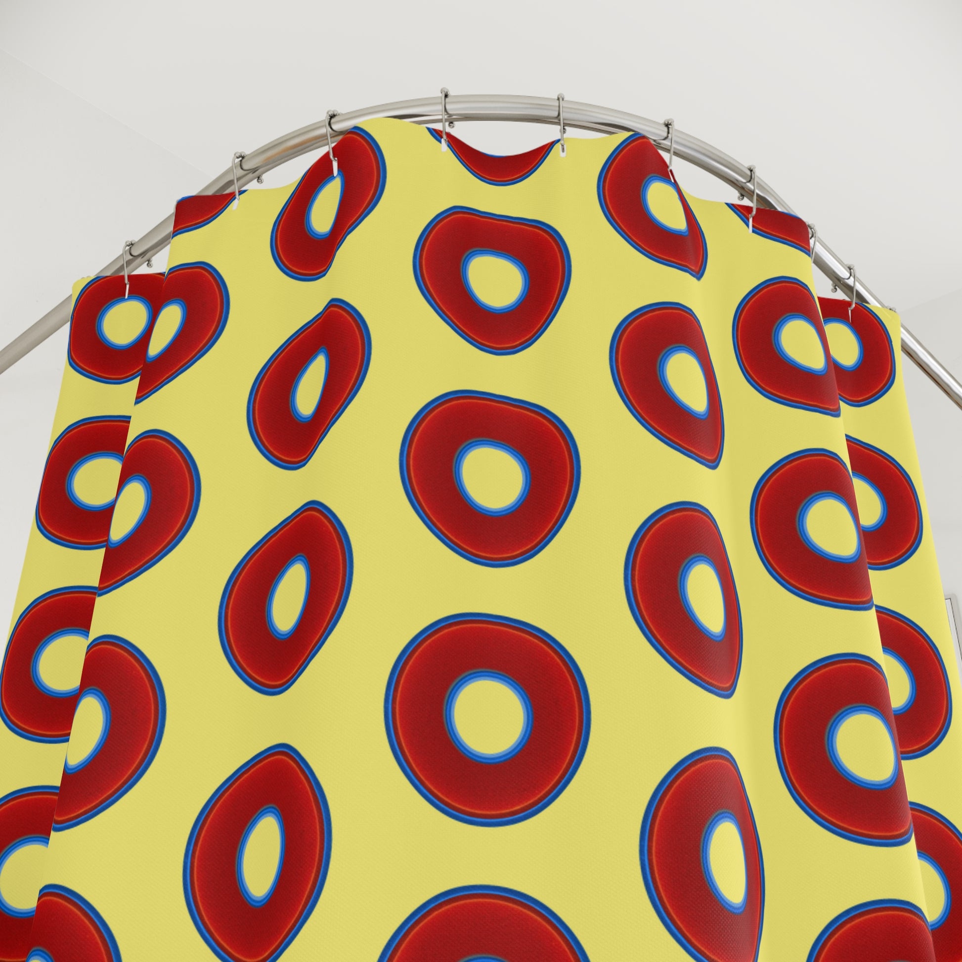 The Curtain With "Donuts" - Lumpy Bath Time Fun - vivid red donuts w/yellow background