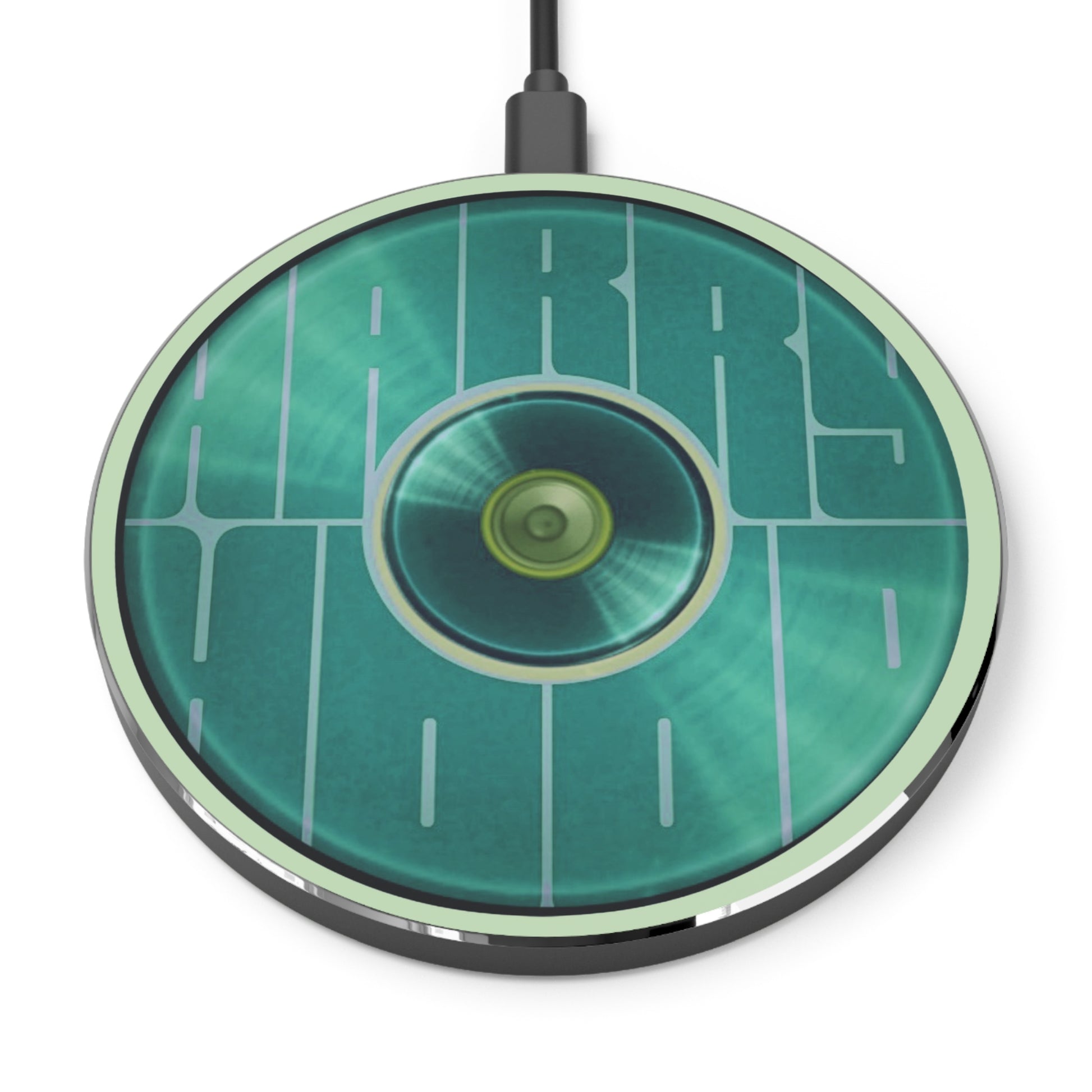 The Flow - Wireless Lumpy Donut Chargers - "Hoodlum's Donut Charger" - vivid green word donut w/seafoam background - variant 2