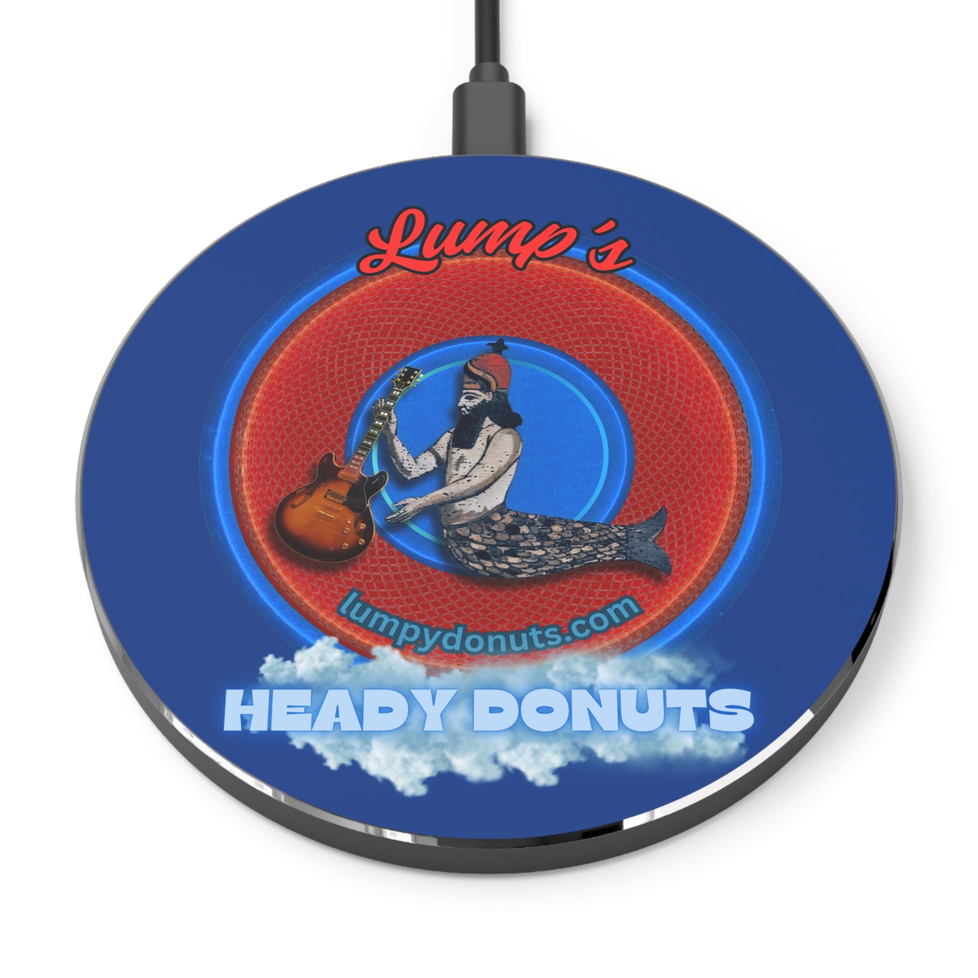 The Flow - Wireless Lumpy Donut Chargers - "Lump's Official Logo" - vivid red Dagon donut/royal blue background - variant 4