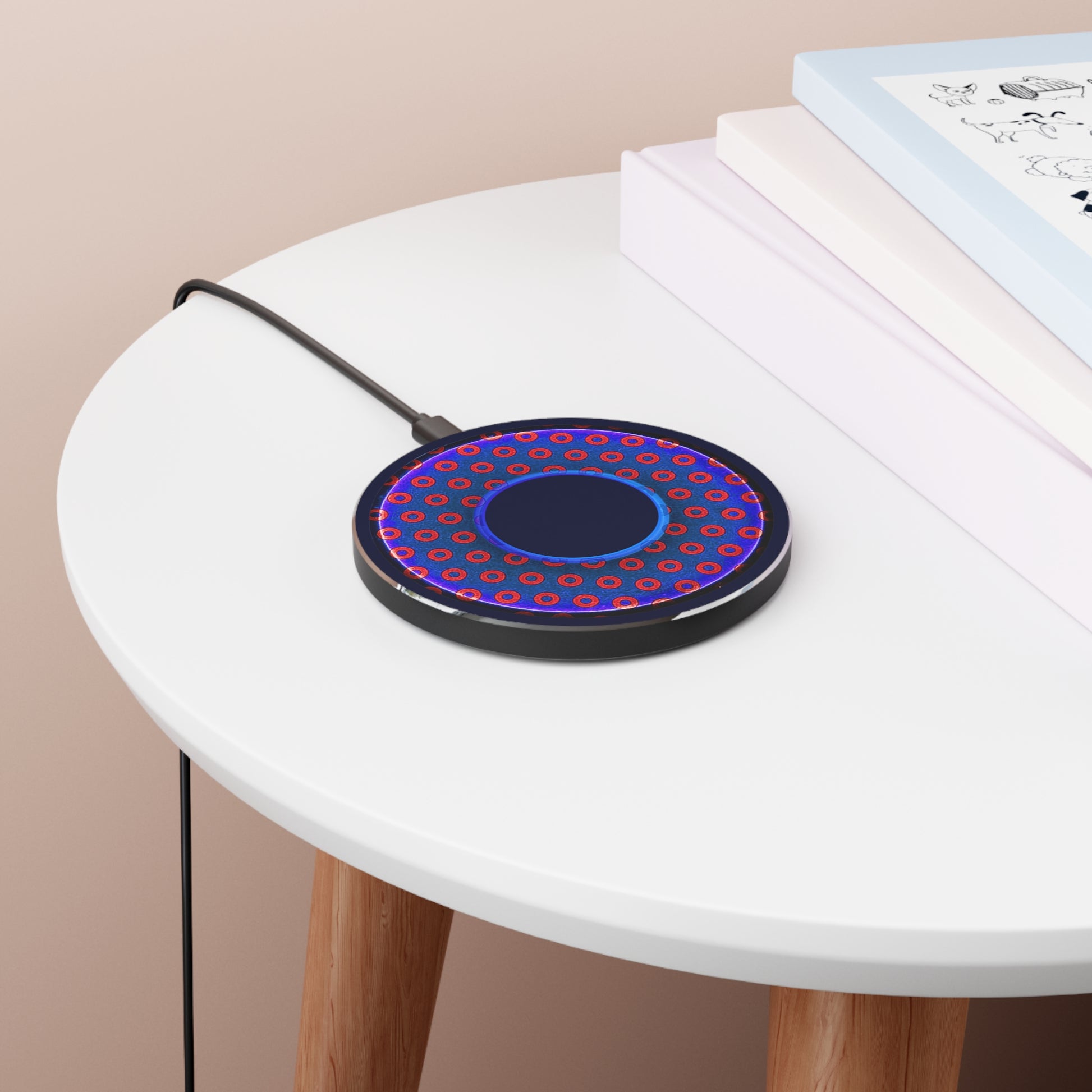 The Flow - Wireless Lumpy Donut Chargers - paradoxical rustic red/blue donut w/dark navy background