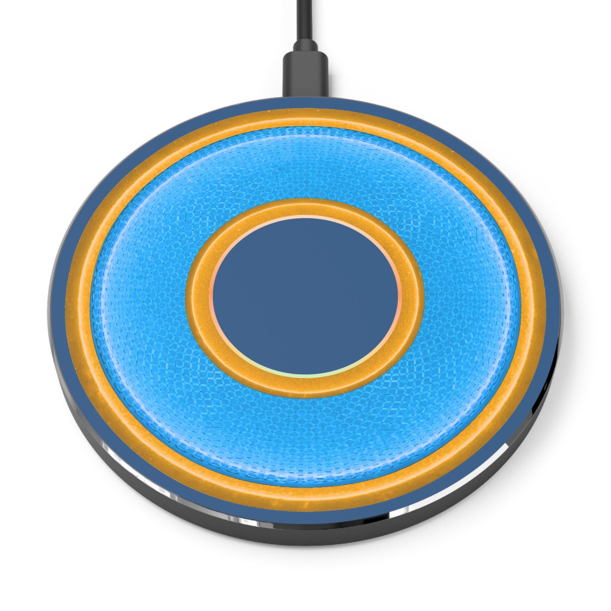 The Flow - Wireless Lumpy Donut Chargers - rustic light blue/yellow donut w/light navy background