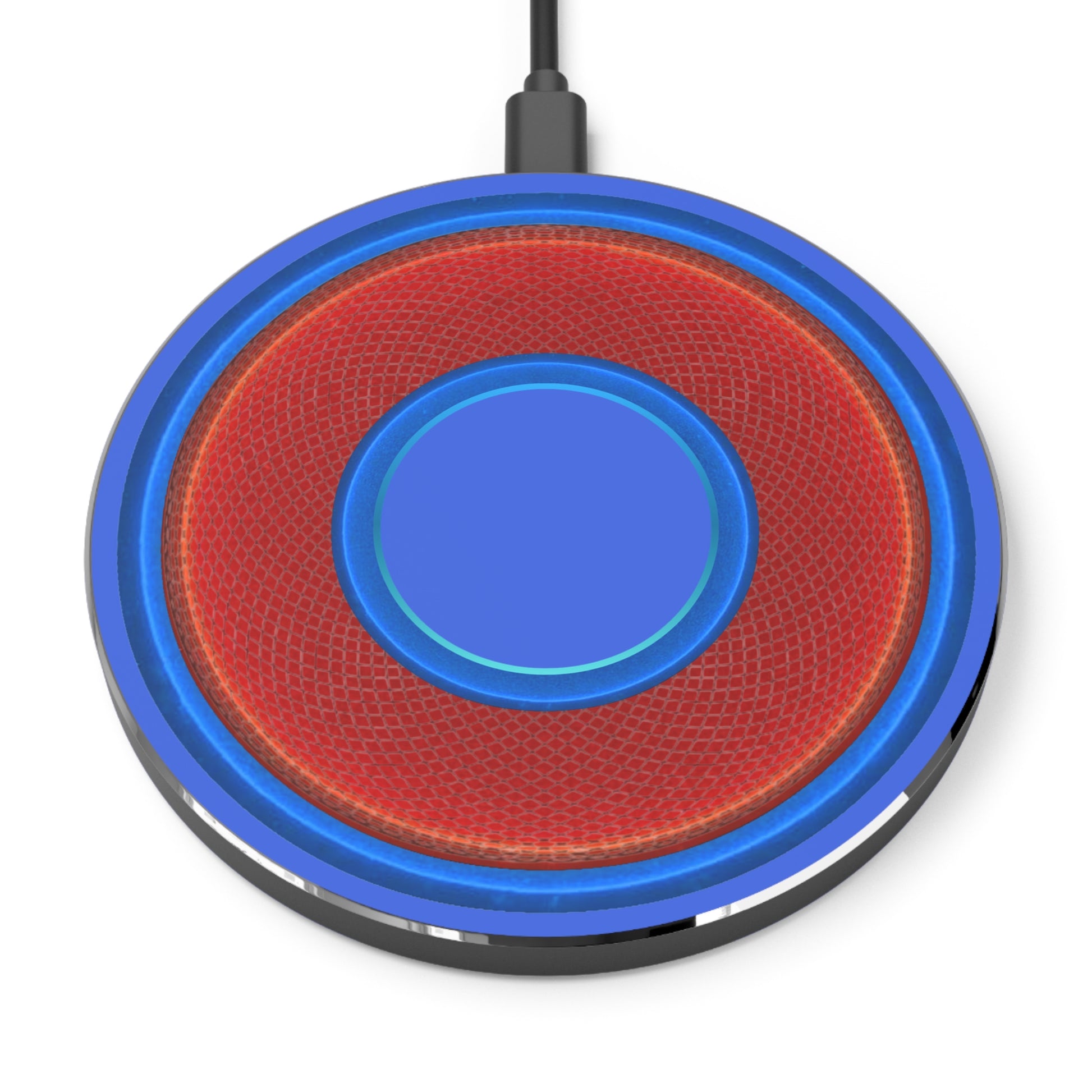 The Flow - Wireless Lumpy Donut Chargers - rustic red/blue donut w/royal blue background