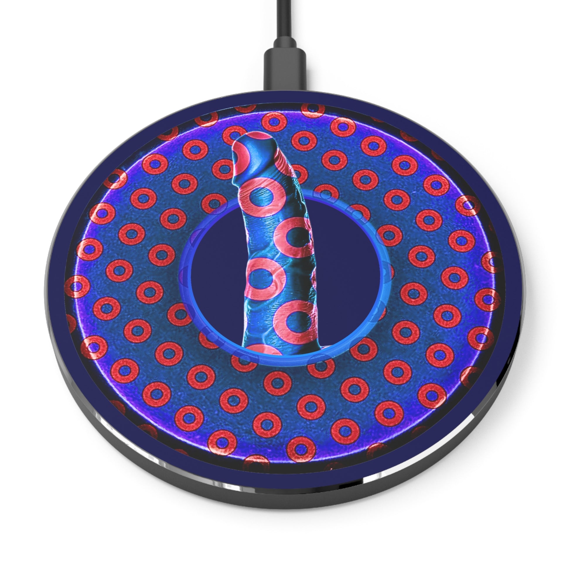 The Flow - Wireless Lumpy Donut Chargers - "Sir Richard's Phamous Donut" - paradoxical blue/red donut w/navy background - variant 3