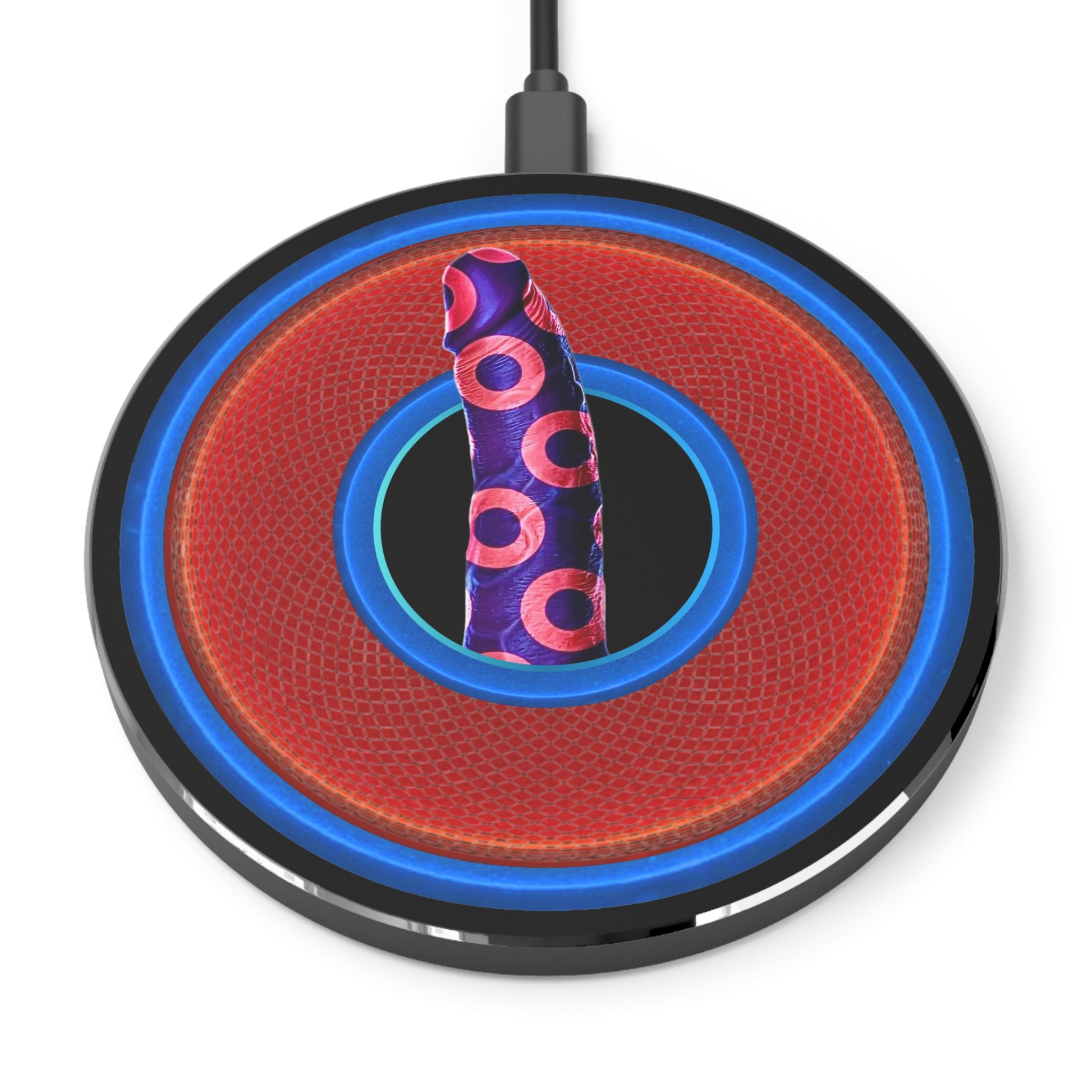 The Flow - Wireless Lumpy Donut Chargers - "Sir Richard's Phamous Donut" - rustic red/blue donut w/black background - variant 1