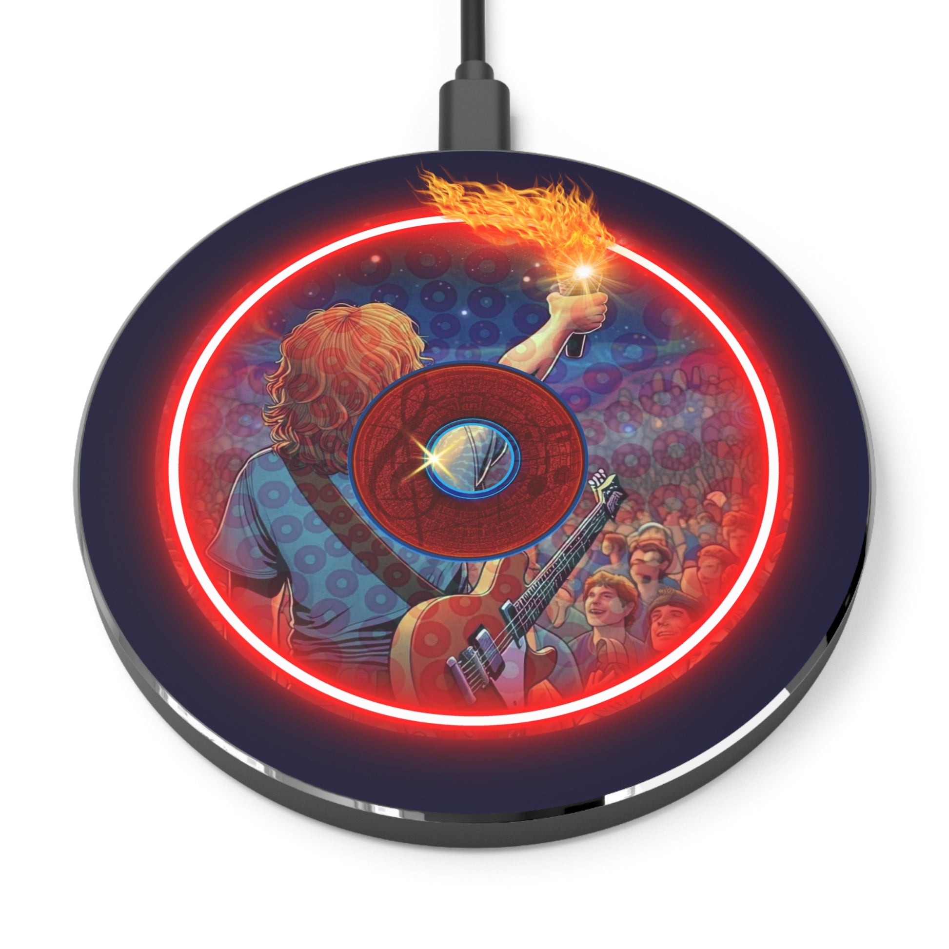 The Flow - Wireless Lumpy Donut Chargers - "Torchbearer's Donut" - vivid red/blue pic donut w/midnight blue background