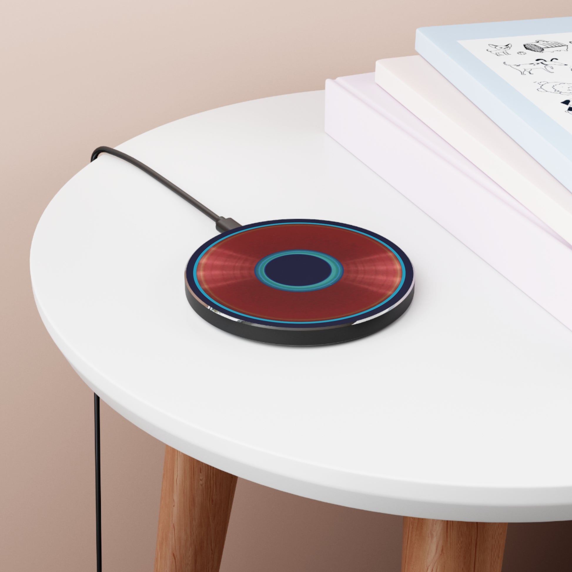 The Flow - Wireless Lumpy Donut Chargers - vivid dark red/blue donut w/midnight blue background