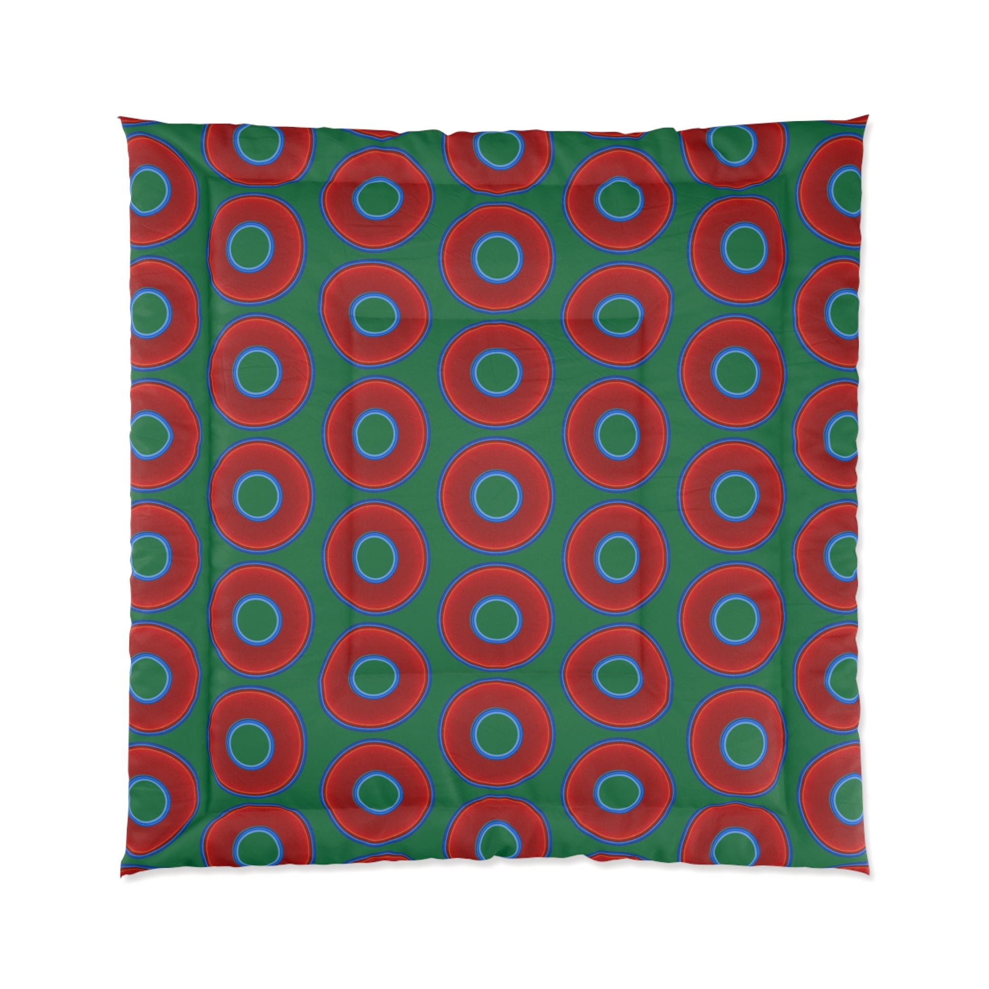 The Very Lumpy Comforter - vivid red donuts w/green background