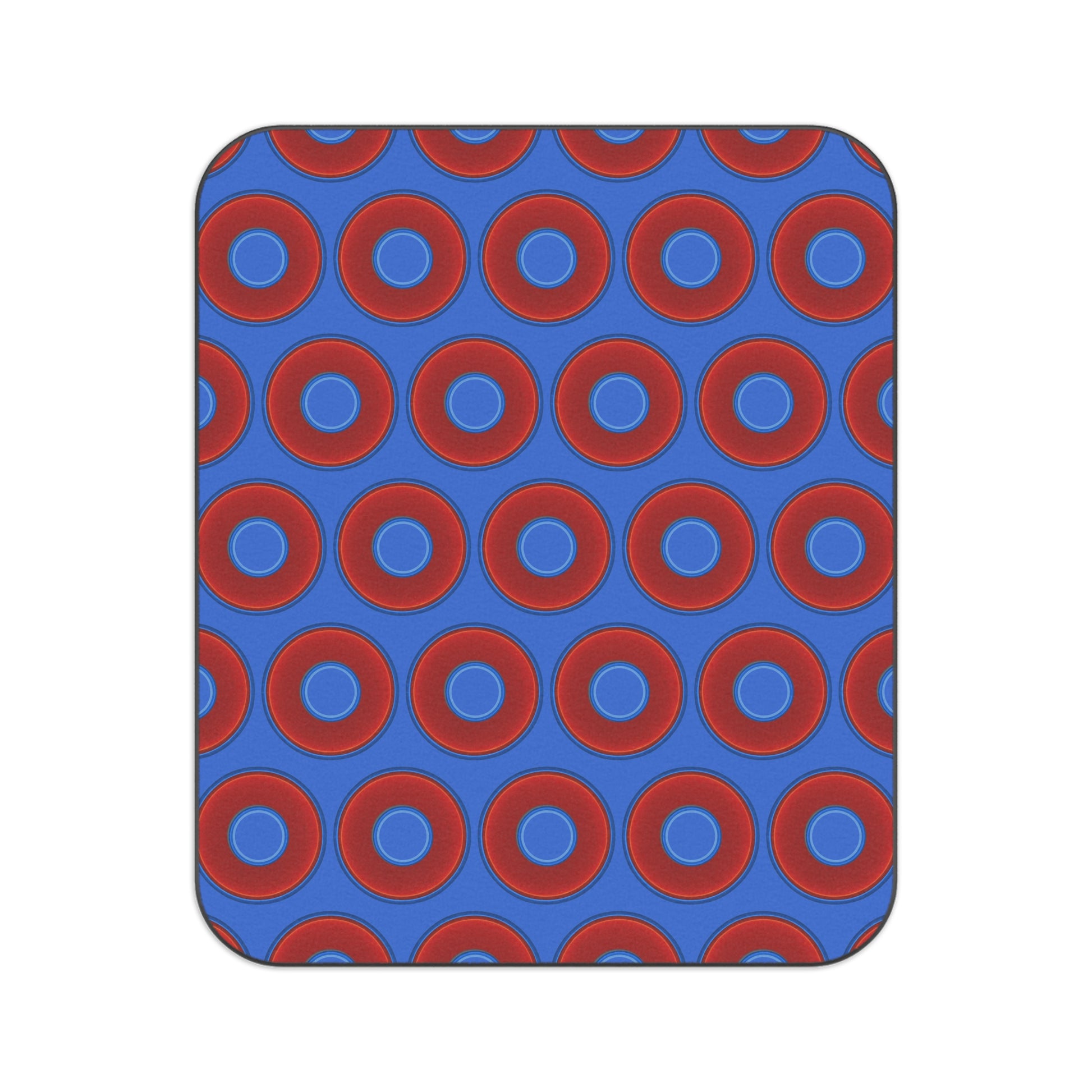 The Lumpy Party Blanket - giant water-resistant outdoor blanket [61" x 51"] - vivid red donuts w/medium royal blue background