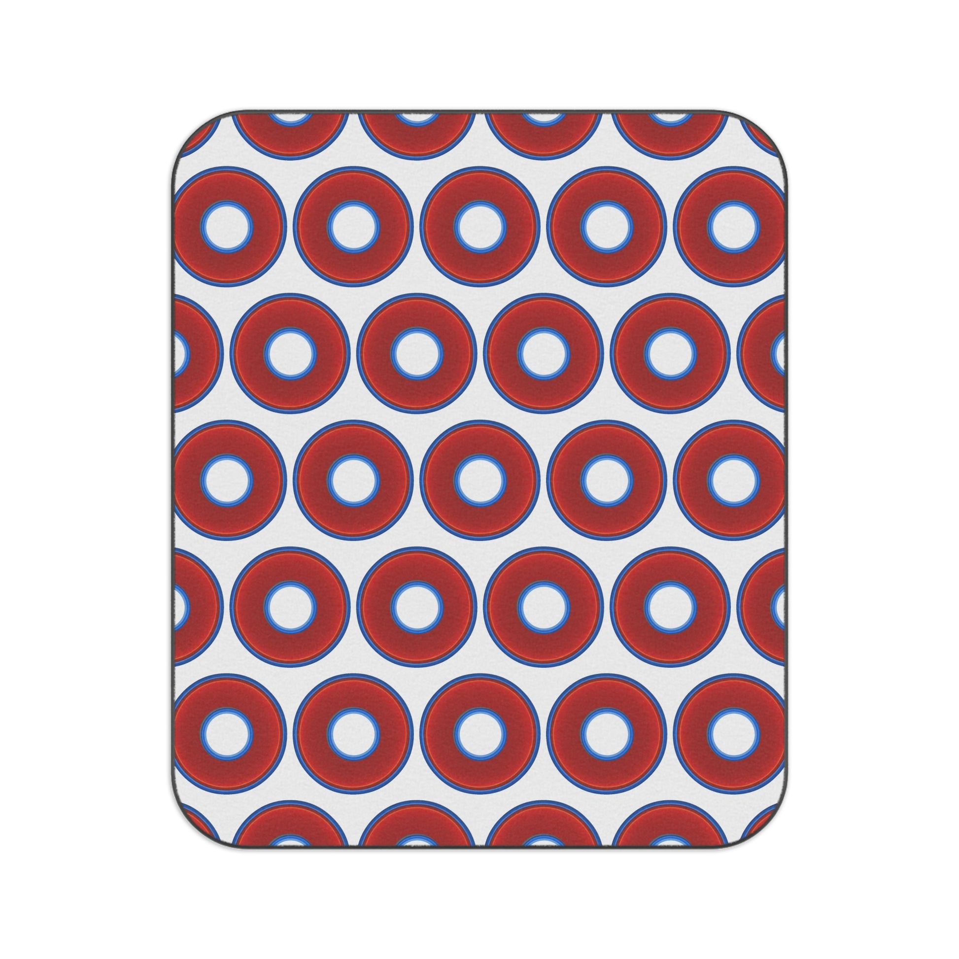 The Lumpy Party Blanket - giant water-resistant outdoor blanket [61" x 51"] - vivid red donuts w/white background