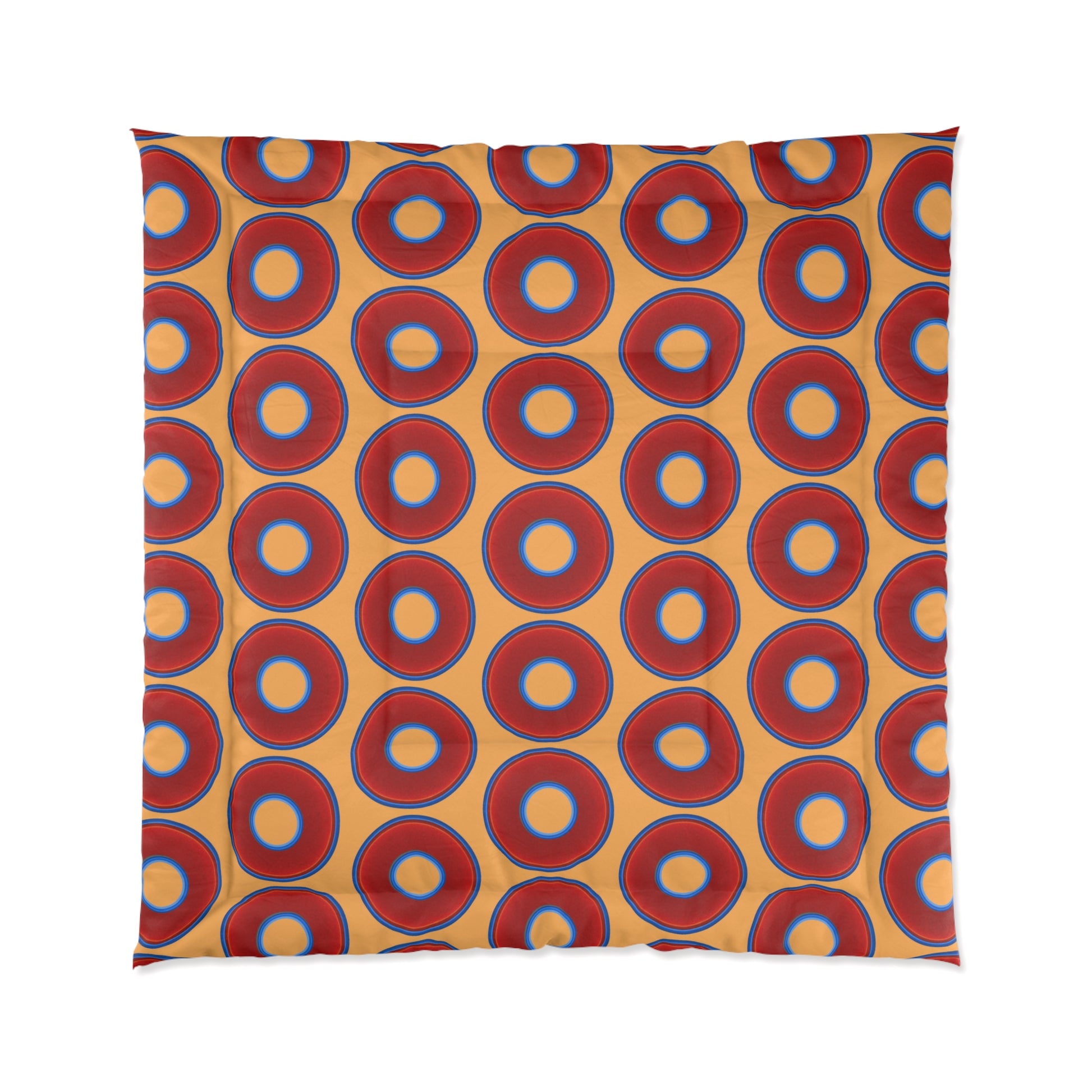 The Very Lumpy Comforter - vivid red donuts w/creamsicle orange background