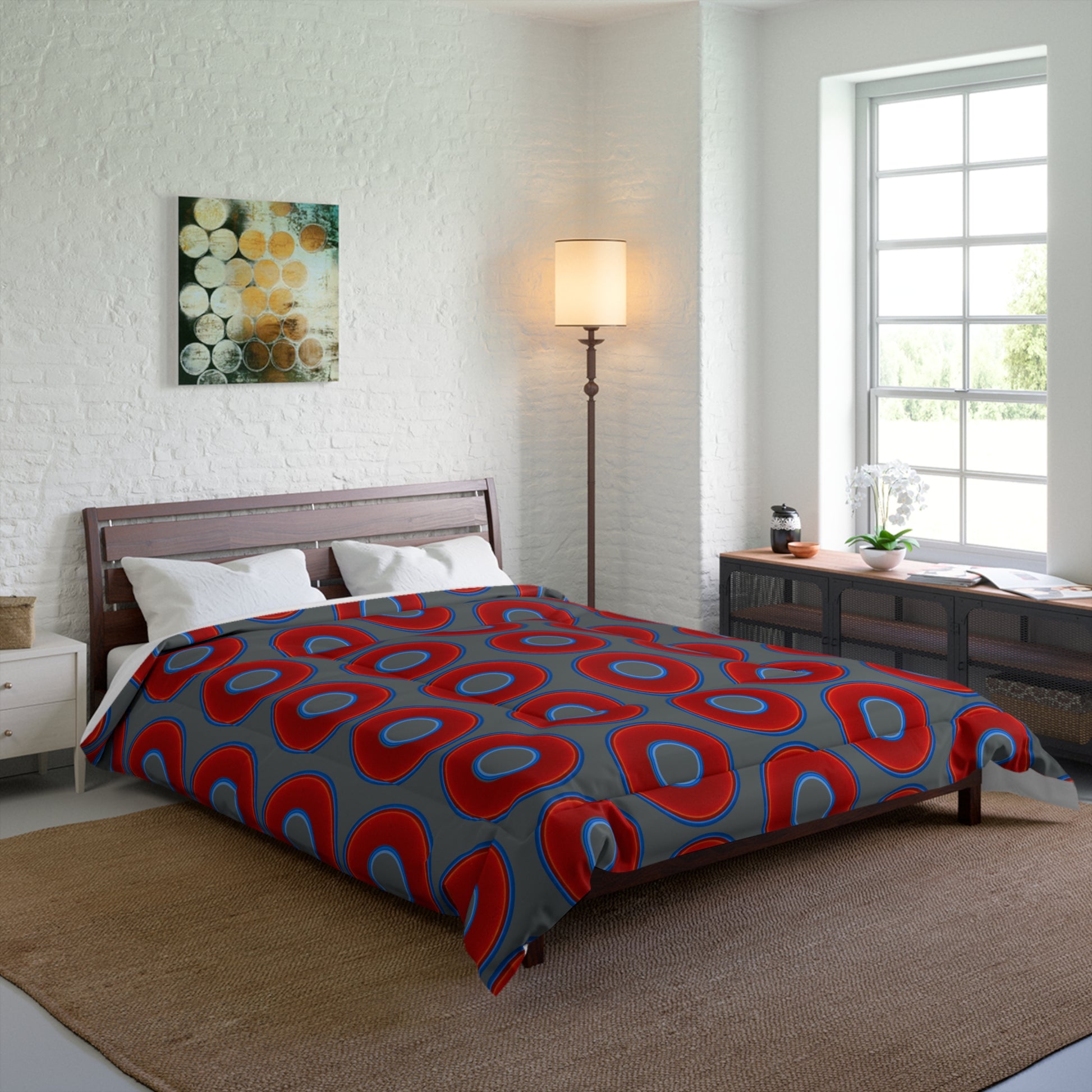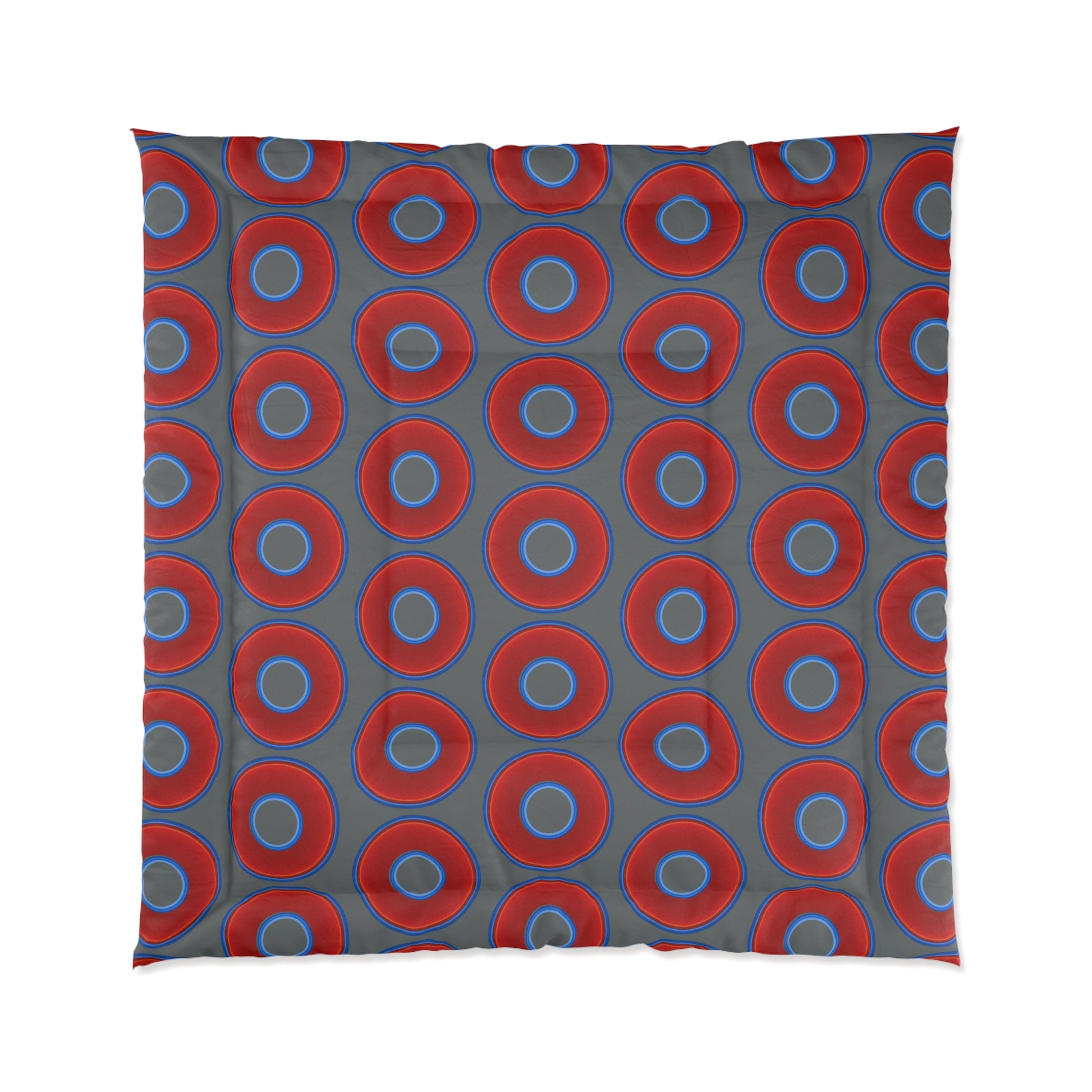 The Very Lumpy Comforter - vivid red donuts w/dark gray background