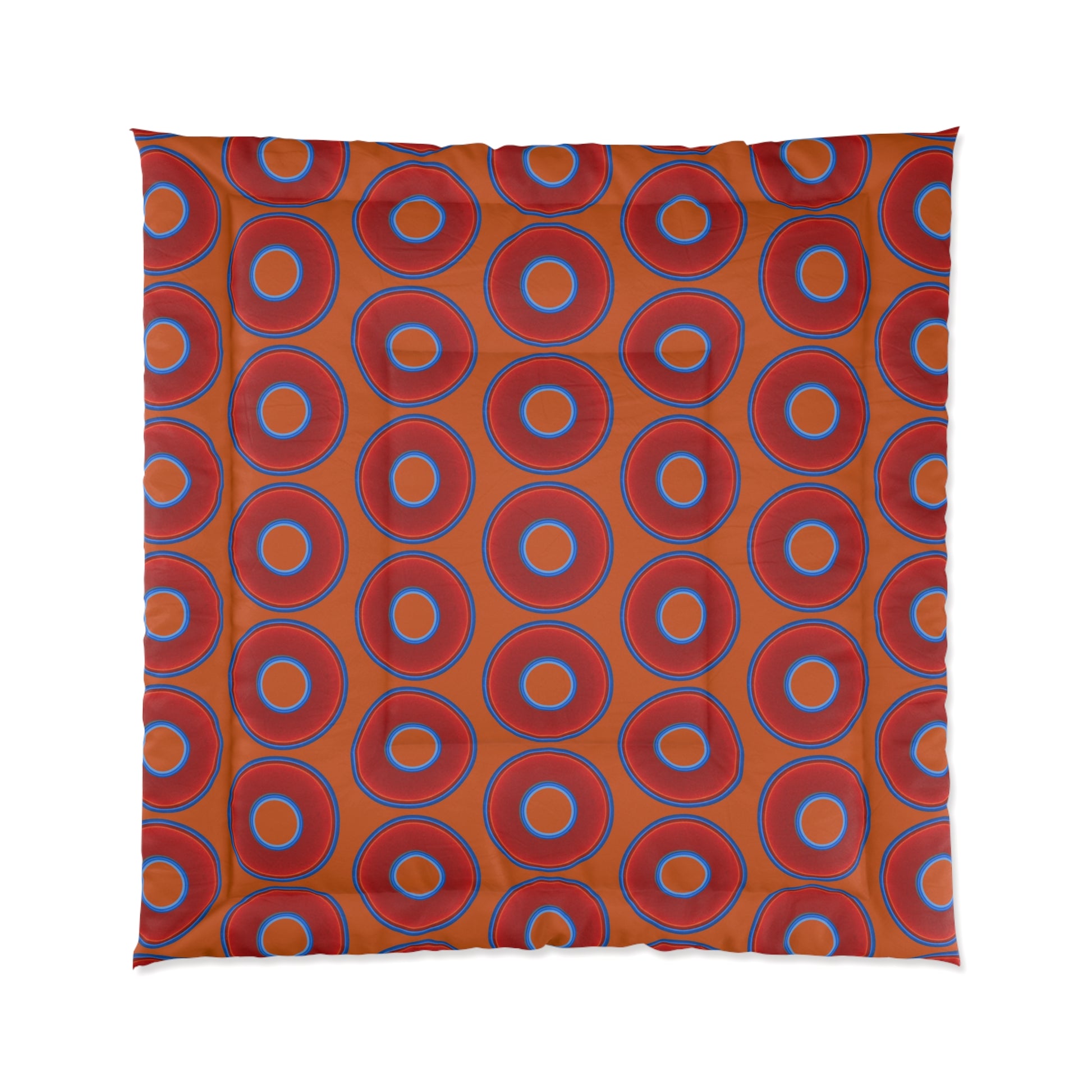 The Very Lumpy Comforter - vivid red donuts w/dark orange background