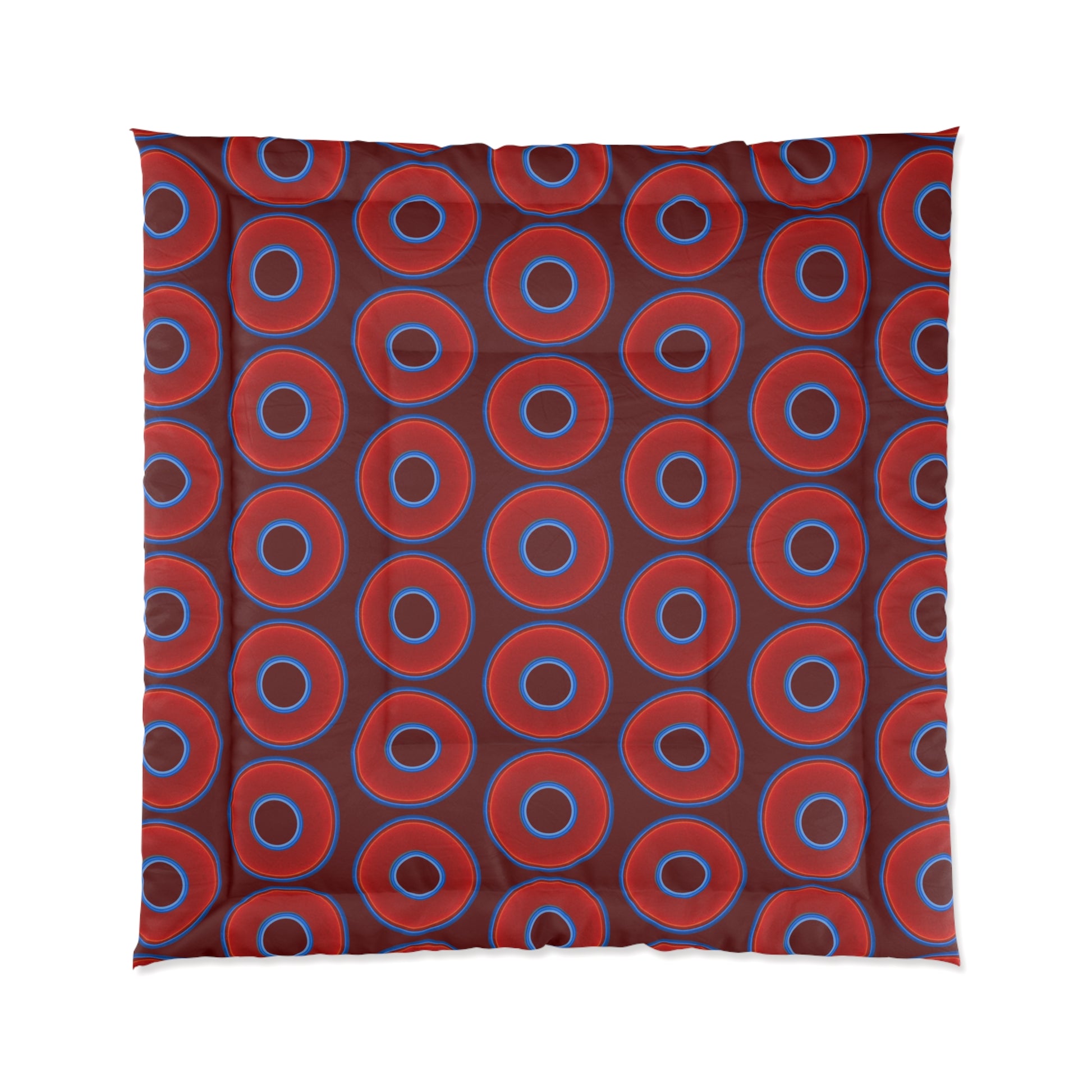 The Very Lumpy Comforter - vivid red donuts w/dark red background
