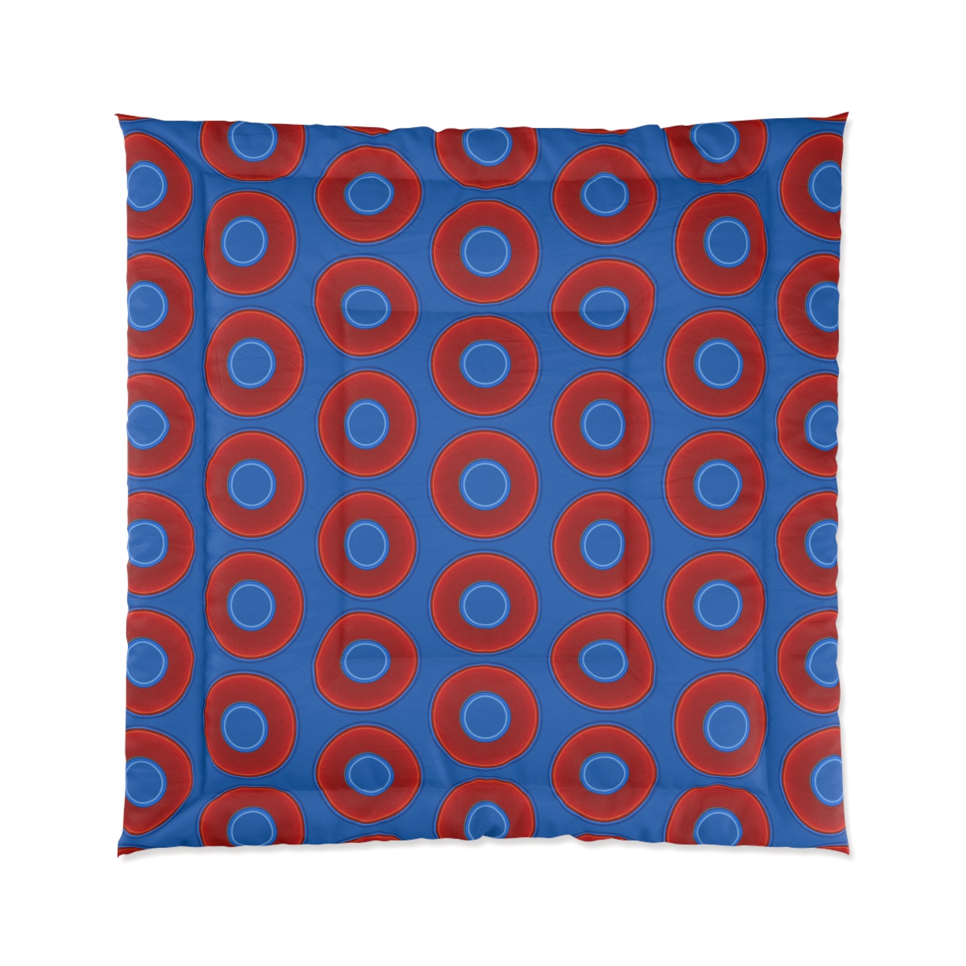 The Very Lumpy Comforter - vivid red donuts w/dark royal blue background