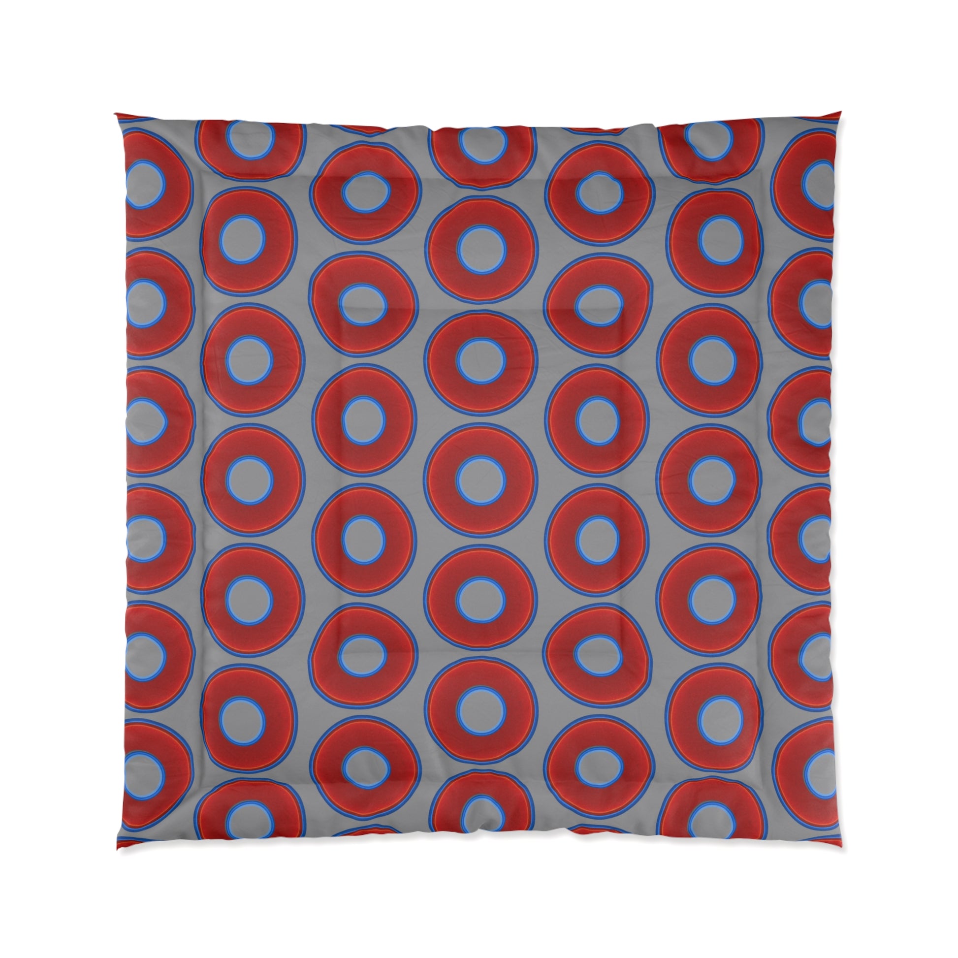 The Very Lumpy Comforter - vivid red donuts w/gray background