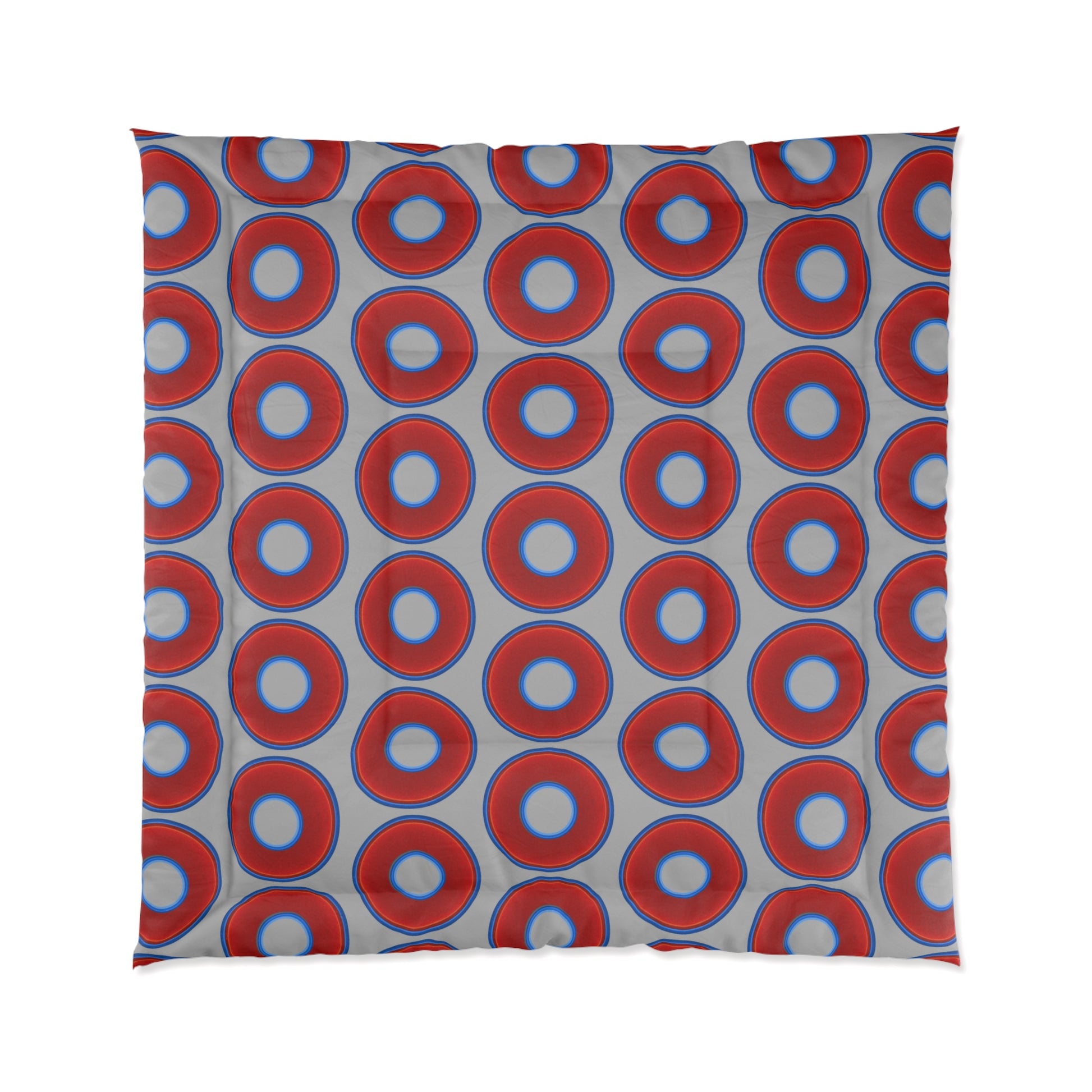 The Very Lumpy Comforter - vivid red donuts w/light gray background